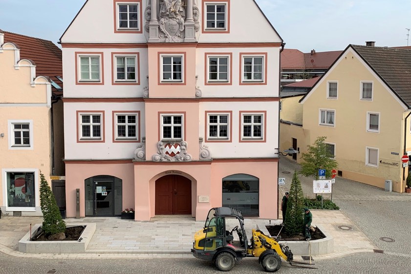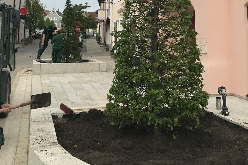 (ty) Am heutigen Donnerstag sind in Geisenfeld zwei Hainbuchen geliefert und vor dem historischen Rathaus eingepflanzt worden. Neben den beiden "Carpinus Betulus", wie die Bäume auf Lateinisch heißen, finden nach Angaben der Stadtverwaltung hier bald auch noch Bodendecker-Pflanzen ihren Platz. Außerdem sollen noch Sitzbänke aufgestellt werden. Damit werde eine weitere Oase zum Verweilen in der City geschaffen. Die Neugestaltung des Areals vor dem alten Rathaus sei eine Maßnahme des Projekts "Barrierefreie Innenstadt".