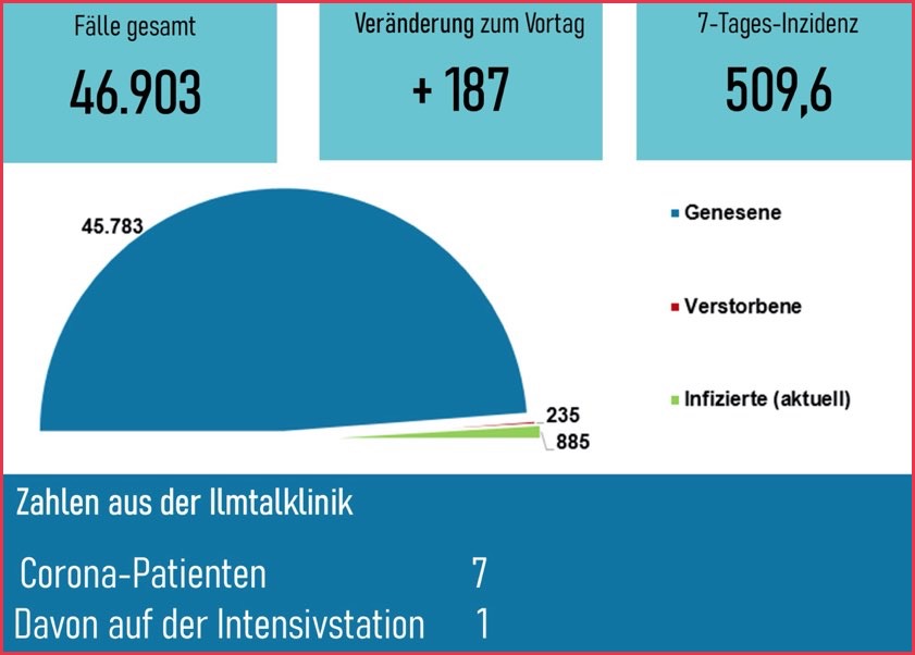 Bislang 46.903 Infektionen: 235 Betroffene gestorben, 885 aktive Fälle, Sieben-Tage-Inzidenz: 509,6. Die Lage und die aktuellen Regeln im Überblick.