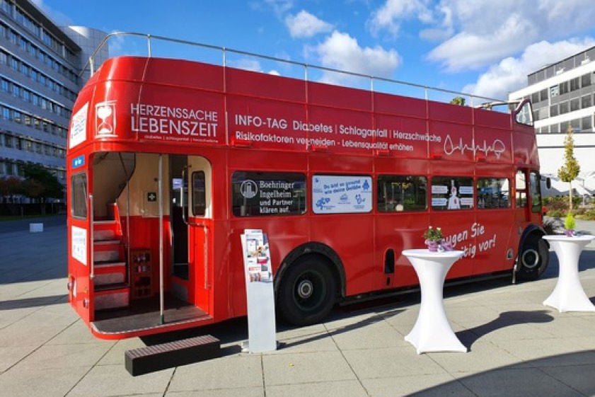 Interessierte haben an dem Bus die Möglichkeit, im direkten Gespräch mit Fachärzten offene Fragen zu klären und ihr persönliches Risiko für Diabetes, Schlaganfall oder Herz-Kreislauf-Erkrankungen testen zu lassen. Hierfür werden beispielsweise Blutdruck und Blutzuckerwerte gemessen. Informations-Materialien sorgen für zusätzliche Aufklärung über Risiko-Faktoren, darunter Vorhof-Flimmern, eine häufig zu spät diagnostizierte Herzrhythmus-Störung.
