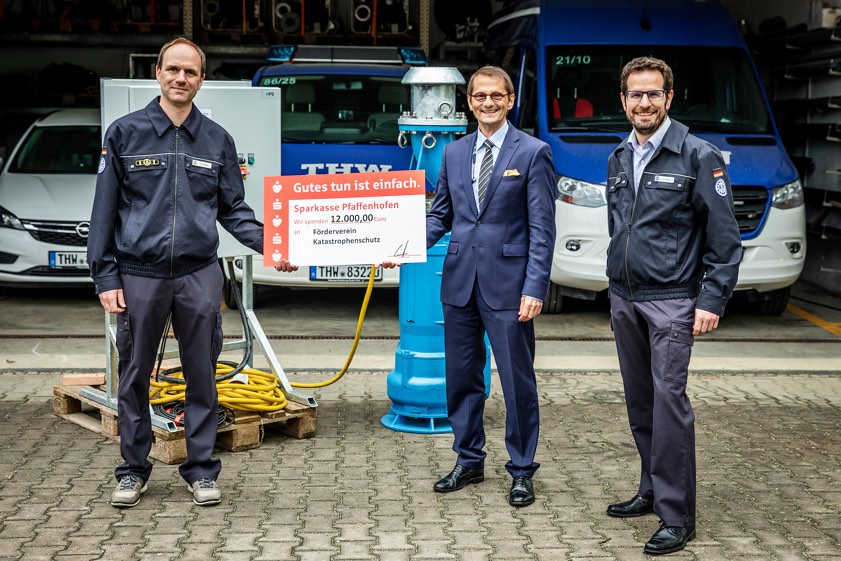 Das neue Equipment füge sich sinnvoll in die umfassende Pumpen-Ausstattung des THW-Ortsverbands ein. Die ehrenamtlichen Einsatzkräfte waren in den vergangenen Jahren immer wieder nach Starkregen-Ereignissen oder bei Hochwasser regional, aber auch überregional angefordert worden – eine der Kernkompetenzen des Pfaffenhofener THW. Der Katastrophenschutz-Förderverein, der die Zuwendung offiziell übernehmen durfte, bedankte sich für die großzügige Spende von 12 000 Euro. Besonders unterstrich der Vorsitzende Michael Matthes die durchweg überragende Unterstützung der Pfaffenhofener Sparkasse und die solide Partnerschaft über die vielen Jahre.