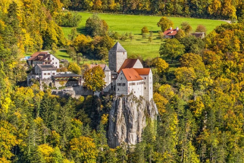 Der beeindruckende historische Komplex, der stolz über dem Altmühltal thront, gilt als Idealbild einer Ritterburg und als eine der am besten erhaltenen Ritterburgen in Deutschland. Die Herren von Prunn waren erstmals anno 1037 urkundlich erwähnt worden. "Vom 11. bis zum 16. Jahrhundert herrschten hier die mächtigen Adelsfamilien der Laaber und Fraunberger", erklärt die bayerische Schlösser-Verwaltung. Der Burgbau selbst, mit dem wuchtigen Bergfried, reiche in die mittelalterliche Blütezeit der Kelheimer Region um 1200 zurück. Unter der Herrschaft der Fraunberger erlebte die Anlage später, ab dem 14. Jahrhundert, seine zweite Ausbauphase. Aus dem Spätmittelalter stammen auch die erhaltenen Wandmalereien im ehemaligen Herrschafts-Zimmer.