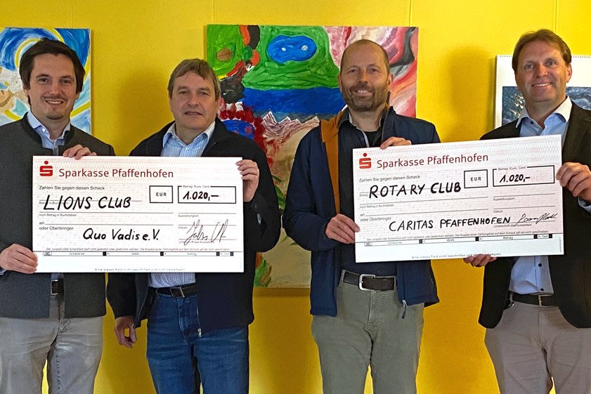 Die Eintritts-Spenden des Publikums in Höhe von 1020 Euro gingen vollständig an die Stiftung zum Fellows-Ride, die sich der Depressionshilfe verschrieben hat. Der Lions-Club und der Rotary-Club spendeten nun jeweils einen Betrag in selber Höhe für Projekte im Kreis Pfaffenhofen. So übergab Lions-Vize-Präsident Johannes Hofner einen Scheck über 1020 Euro an den 1999 gegründeten Verein "Quo Vadis" mit Sitz in Pfaffenhofen. "Wir bieten Hilfe zur Selbsthilfe, indem wir kostenlos Gruppen organisieren, unterstützen und fördern. Dabei sehen wir uns als Sprachrohr der Betroffenen und als Ort gelebter Inklusion", sagt "Quo Vadis"-Vorsitzender Adolf Trägler. Als Ergänzung zu professionellen Hilfen oder bei Fällen, in denen diese nicht in Frage kommen, helfe oft die Beratung durch Betroffene.