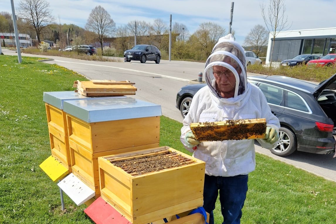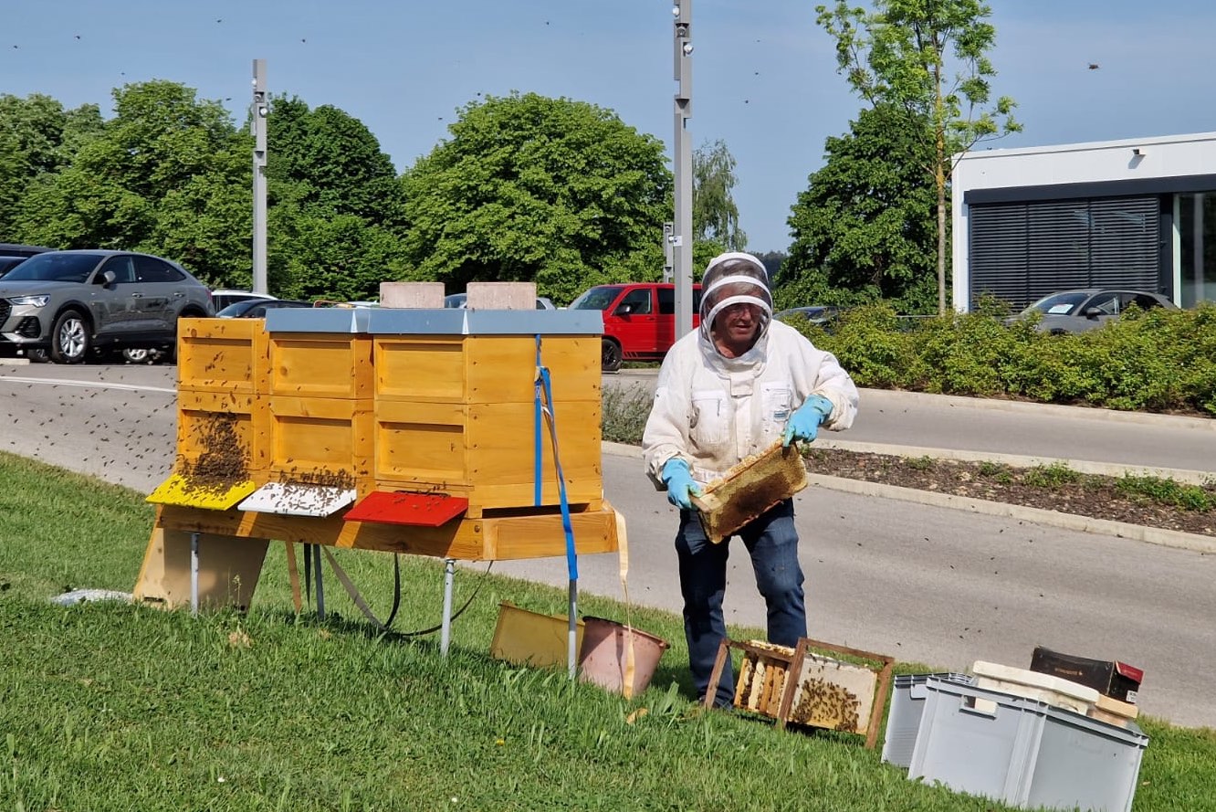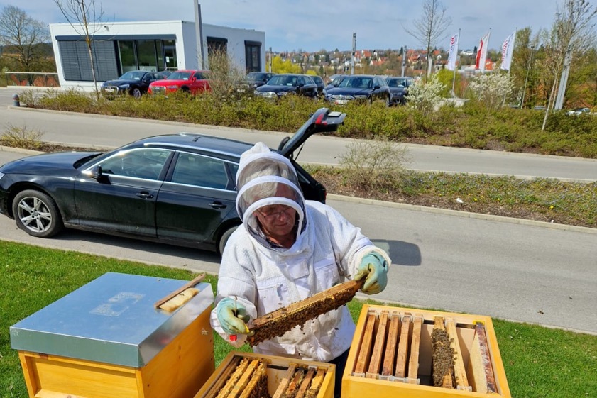 Drei Bienen-Völker produzieren nicht nur Honig, sondern sind auch ein weiterer Baustein im Nachhaltigkeits-Konzept des Pfaffenhofener Autohauses.