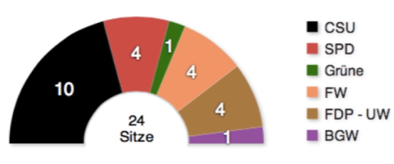Die mit Blick auf die Koalition von CSU, FW und Grüne geführten Gespräche verlaufen nach Angaben der Freien Wähler „äußerst angenehm und konstruktiv“. Viele Themen aus dem FW-Wahlprogramm würden eingebracht. „Gerade im Hinblick auf unsere Hauptthemen Transparenz und Bürgerbeteiligung haben wir Zustimmung erhalten. Dies war eine grundsätzliche Voraussetzung für eine künftige Zusammenarbeit. Hiervon werden wir nicht abrücken und unseren Standpunkt klar vertreten.“
