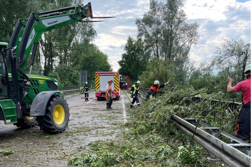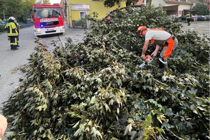 Im Bereich von Moosburg an der Isar kam es zu einem tödlichen Unglück. Die örtliche Polizeiinspektion teilte dazu mit: "Ein 53-jähriger Radfahrer aus Baden-Württemberg, der zusammen mit seiner Lebensgefährtin auf einem Radweg im Bereich des Wasserwerks unterwegs war, wurde durch einen umstürzenden Baum so schwer verletzt, dass er trotz Reanimations-Maßnahmen durch Kräfte der Feuerwehr und des Rettungsdienstes noch an der Unfallstelle verstorben ist." Zur Betreuung der Lebensgefährtin sei ein Krisen-Interventions-Team hinzugezogen worden.