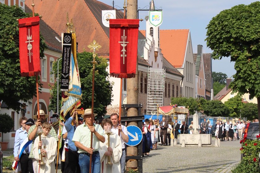 Ferner sorgte die Feuerwehr für die wegen und während des Fest-Umzugs notwendigen Absperrungen und kümmerte sich um die Verkehrs-Regelung. Die Prozessions-Teilnehmer versammelten sich vor der Marktkirche, ehe es zum ersten Altar vor dem Rathaus ging. Anschließend begaben sich die Gläubigen per Prozession zu den Altar-Stationen am Unteren Markt und an der Neuburger Straße, ehe der Fronleichnam-Umzug an der vierten Station in der Kapellenstraße seinen Abschluss fand.