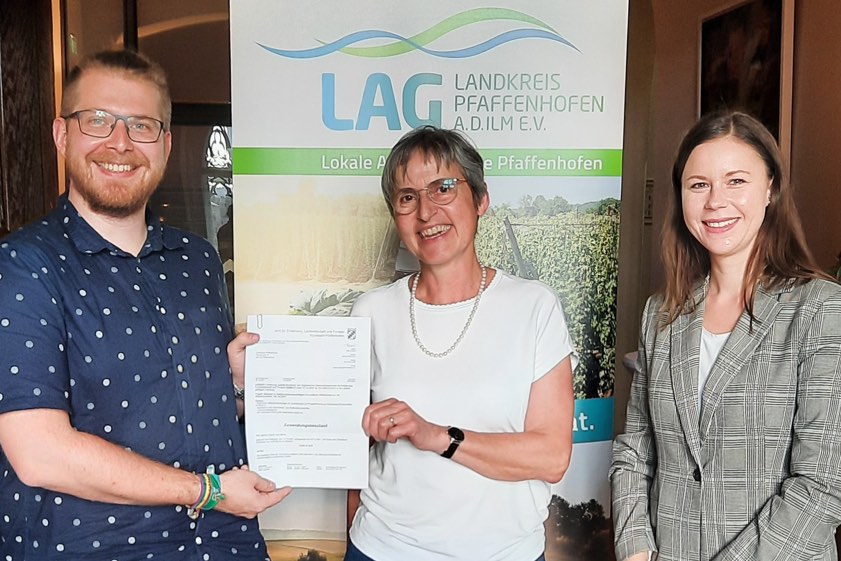 Vor diesem Hintergrund sei nun der Zuwendungs-Bescheid für das Projekt "Netzwerk zu Abfall-Vermeidungs-Strategien im Landkreis Pfaffenhofen" von Agnes Stiglmaier, Leader-Koordinatorin am Amt für Ernährung, Landwirtschaft und Forsten (AELF) Ingolstadt-Pfaffenhofen, und der hiesigen LAG-Managerin Julia Anthofer an Maximilian Weidenhiller, Klimaschutz-Manager des Landkreises Pfaffenhofen, übergeben worden (Foto oben). Das Projekt werde mit rund 13 650 Euro aus dem "Leader"-Programm gefördert.