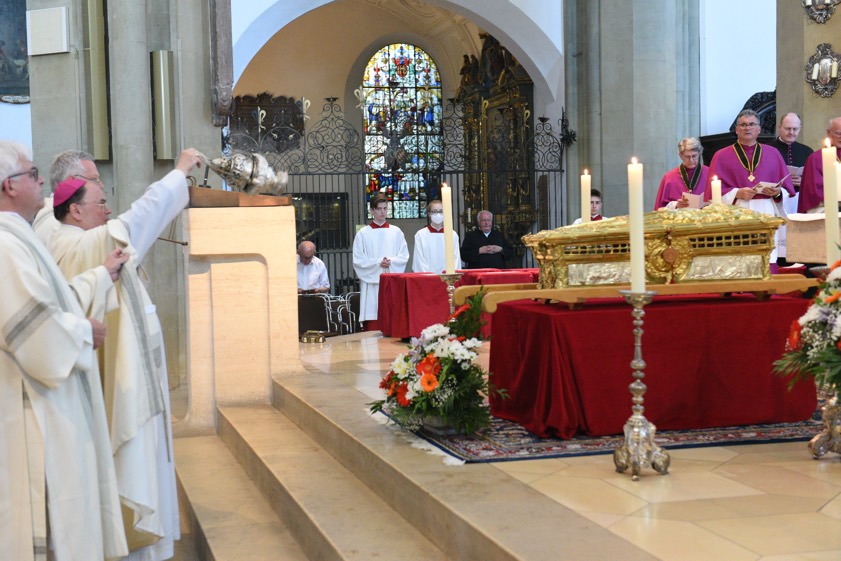 In der Pontifikal-Vesper am Vorabend bezog sich der Bischof auf das Leitwort der Ulrichs-Woche: "In Christus verwurzelt, im Glauben gegründet." Dabei handele es sich um ein Wort aus dem Kolosser-Brief, geschrieben als Mahnung in einer Zeit, in der bei den Menschen in Kolossä in Kleinasien der Glaube an Jesus Christus schon wieder zu verschwinden drohte. Im Rahmen der Vesper wurde auch der Schrein mit den Gebeinen des Heiligen Ulrich feierlich erhoben und damit die diesjährige Ulrichs-Woche eröffnet. Sie endet am nächsten Sonntag, 10. Juli, mit der feierlichen Reponierung des Ulrichs-Schreins. Unter www.ulrichswoche.de gibt es einen ausführlichen Überblick über alle Gottesdienste und sonstigen Veranstaltungen.