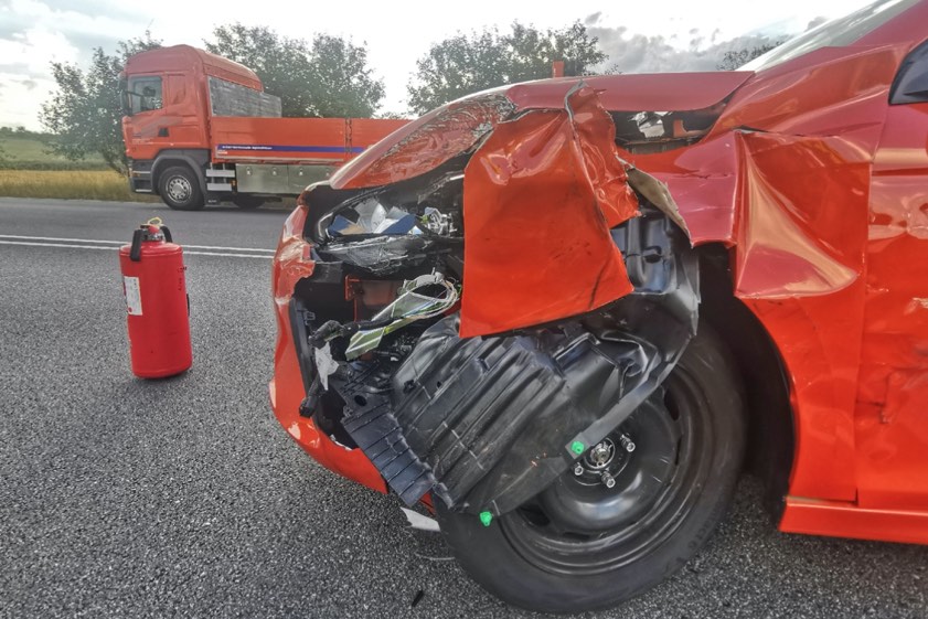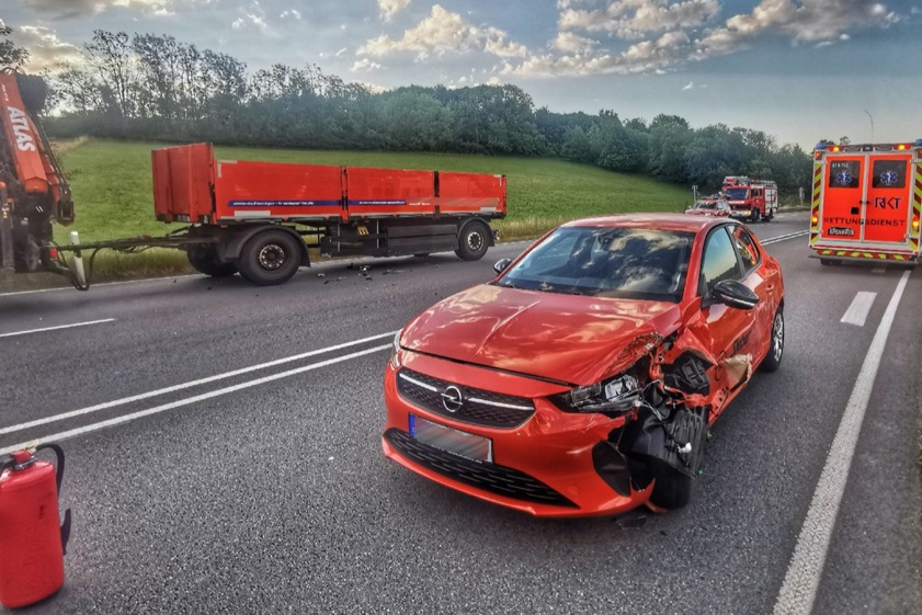 44-Jährige rammte beim Auffahren auf die Bundesstraße mit ihrem Pkw einen Lastwagen. Sie kam mit leichten Verletzungen davon.