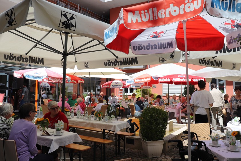 (ty) Am gestrigen Nachmittag haben rund 140 Leute das traditionelle Sommerfest des städtischen Senioren-Büros von Pfaffenhofen gefeiert (Fotos). Ab 14 Uhr war ein abwechslungsreiches und unterhaltsames Programm im Innenhof des Bürger-Zentrums am Hofberg geboten. Für die musikalische Umrahmung der Gäste sorgte dieses Mal Hans Herget am Keyboard. Bei Ratsch und Sonnenschein gab es Kaffee, Kuchen und kühle Getränke vom "Café Hofberg". Ab etwa 16 Uhr spendierte die hiesige Brauerei Müllerbräu dann noch Bier vom Fass. Vize-Bürgermeister Roland Dörfler (Grüne) und die Leiterin des Senioren-Büros, Heidi Andre, begrüßten die Gäste zu der Veranstaltung. "Es freut mich unbändig, dass das Sommerfest nach zwei Jahren wieder stattfinden kann", erklärte Dörfler und wünschte ein fröhliches Zusammensein.