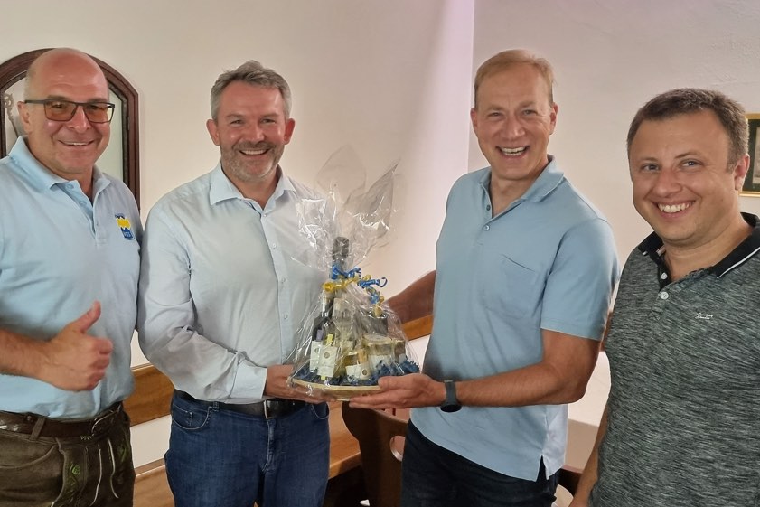 (ty) Im Rahmen der jüngsten Monats-Versammlung hat die "Wählergruppe Gemeinde Scheyern" (WGS) ihrem Vorsitzenden Markus Fiederer (Foto oben, Zweiter von links) zum 50. Geburtstag gratuliert. Wolfgang Inderwies (links), der Sprecher der WGS-Fraktion im Gemeinderats-Gremiums von Scheyern, würdigte in diesem Zusammenhang die ehrenamtlichen Verdienste des Studiendirektors in einer kurzen und launigen Laudatio. Die Vorstands-Mitglieder Robert Hofmann (Zweiter von rechts) und Markus Rachl (rechts) überreichten dem Jubilar dann ein Geburtstags-Präsent.