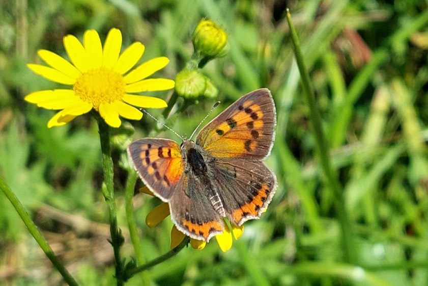 (ty) Und schon geht sie weiter, die Serie von beeindruckenden Fotos aus der Region, die uns unsere Leserinnen und Leser nach wie vor übermitteln. Die beiden weiteren Motive, die wir Ihnen am heutigen Dienstag zeigen können, hat uns Helmut Kurzböck aus dem Gemeinde-Bereich von Jetzendorf geschickt. Entstanden sind die zwei Bilder seinen Worten zufolge in dem Wäldchen zwischen Jetzendorf und Petershausen, also im Bereich der Grenze zwischen den Landkreisen Pfaffenhofen und Dachau. Auf dem Foto oben ist eine kleine Landkärtchen-Versammlung zu sehen, auf dem Foto unten ein Kleiner Feuerfalter.