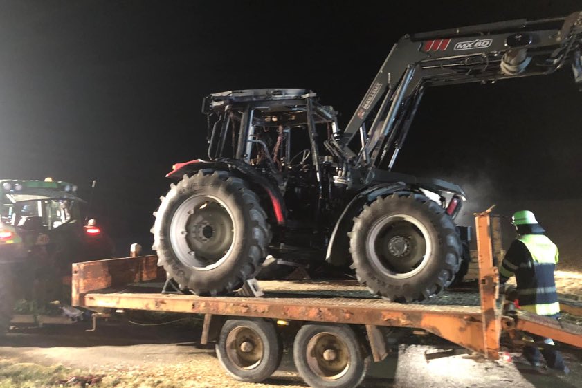 "Die verständigten Feuerwehren aus Hilgertshausen und Tandern löschten das Feuer, dennoch brannte der Traktor vollständig aus", fasste heute ein Sprecher der örtlich zuständigen Polizeiinspektion aus Dachau zusammen. Nach den bisher vorliegenden Erkenntnissen werde von Seiten der Polizei von einem technischen Defekt als Ursache für den Brand ausgegangen. Der entstandene Sachschaden wurde von den Streifenbeamten in einer Größenordnung von etwa 35 000 Euro angesiedelt. Im Einsatz waren die Feuerwehren aus Hilgertshausen und Tandern.
