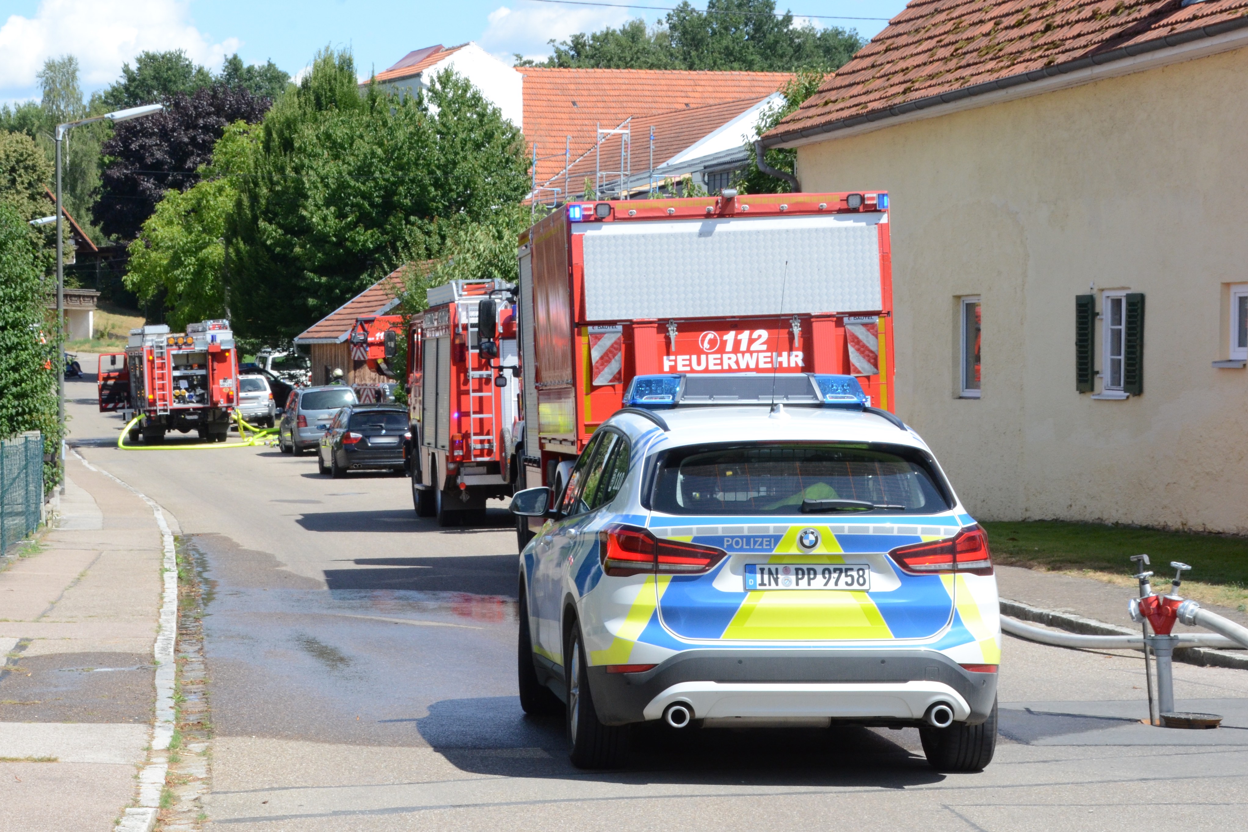Laut heutigen Angaben des Polizeipräsidiums Oberbayern-Nord waren von Bewohnern des betroffenen Einfamilienhauses an der Dorfstraße zunächst verdächtige Geräusche aus der angebauten Werkstatt wahrgenommen worden. Als sie der Sache auf den Grund gingen, entdeckten sie den Brand. "Diesen konnten die Bewohner selbst nicht mehr löschen und setzten einen Notruf ab", erklärt ein Polizei-Sprecher. Bei Lösch-Versuchen habe ein 61-Jähriger eine Rauchgas-Vergiftung davongetragen; er sei nach der Erstversorgung vor Ort vom Rettungsdienst in ein Krankenhaus gebracht und dann dort ambulant behandelt worden.