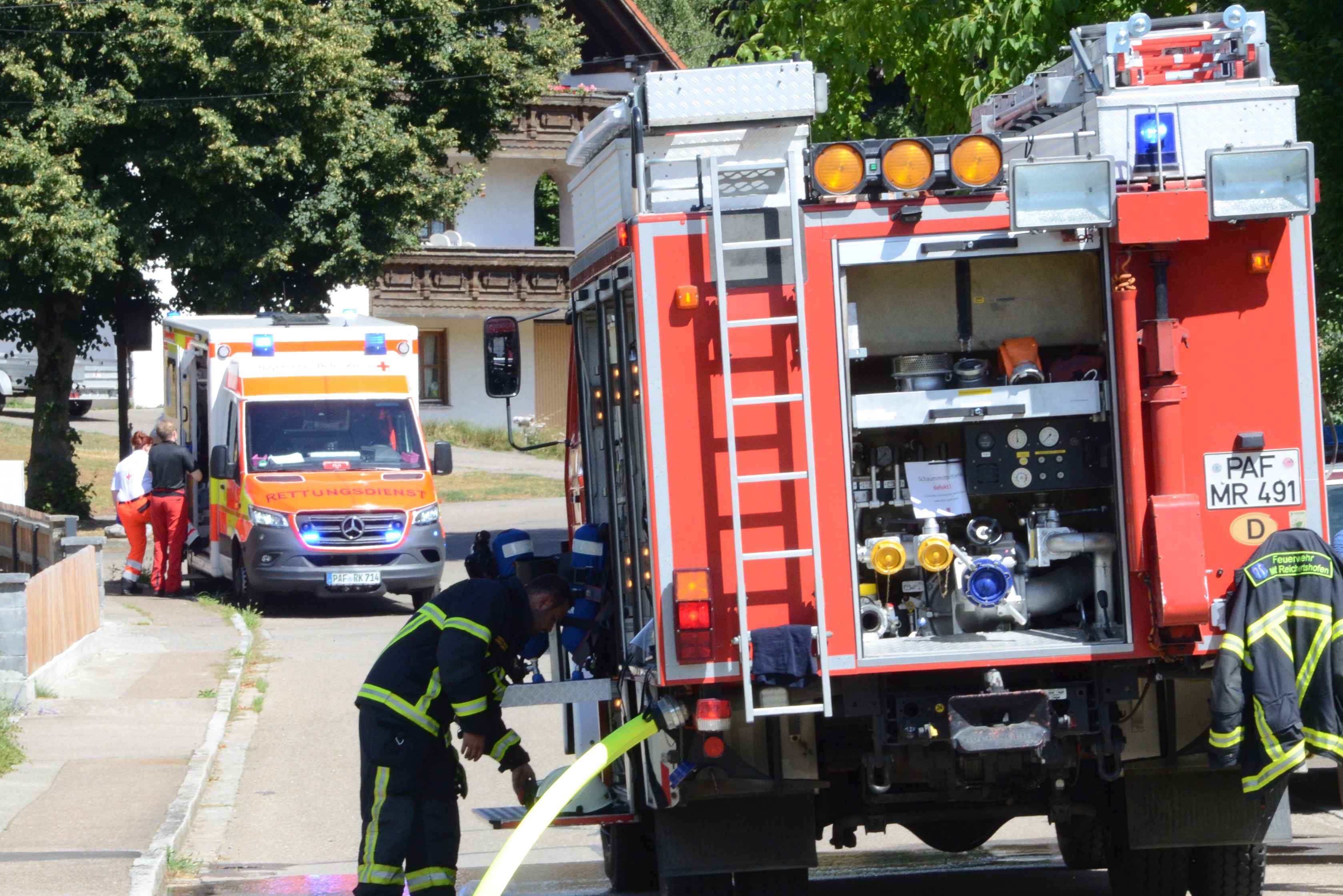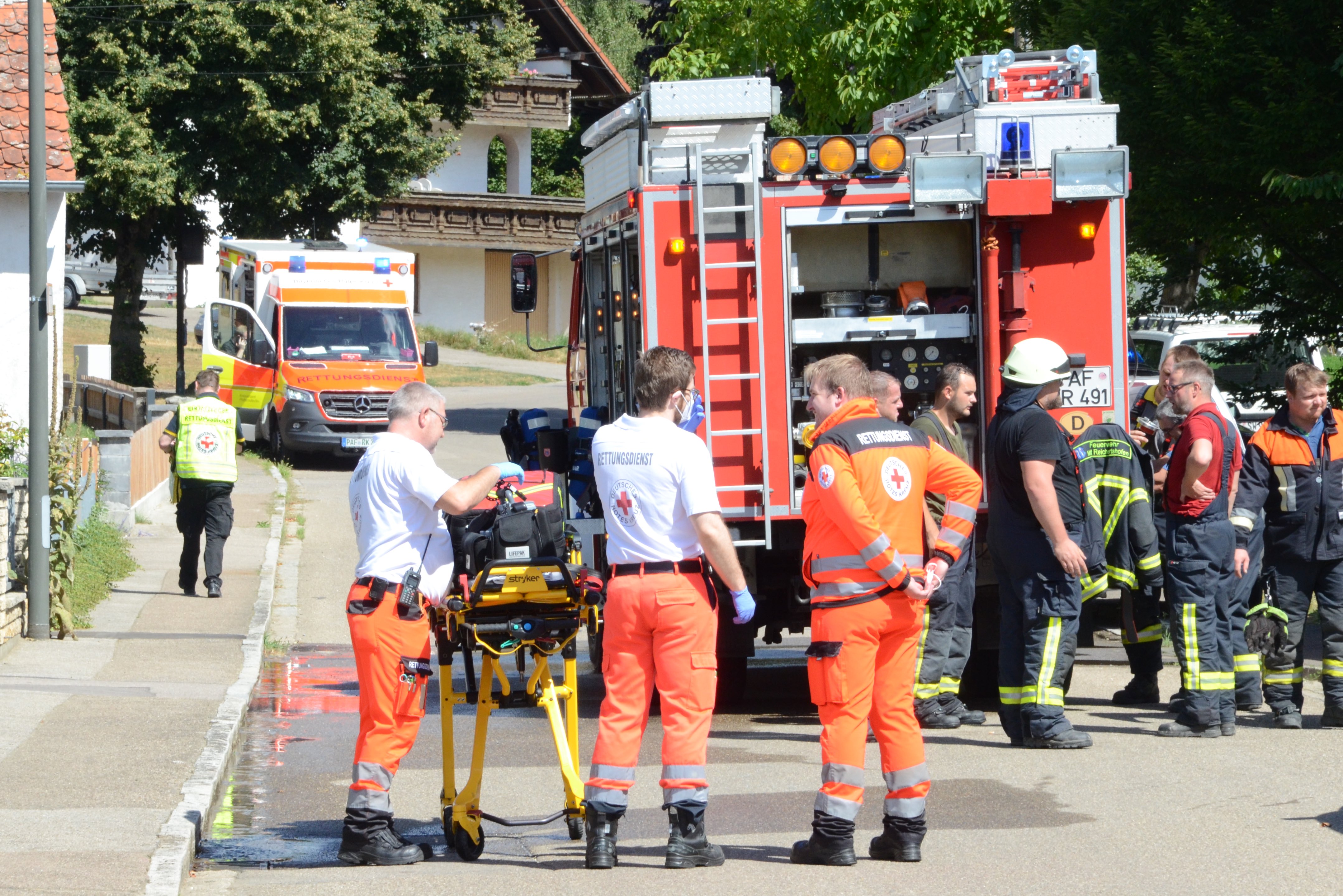 Gegen 14.30 Uhr waren zahlreiche Einsatzkräfte von Feuerwehr und Rettungsdienst sowie die Polizei alarmiert worden. Neben den Floriansjüngern aus Weichenried, Hohenwart, Reichertshofen und Pörnbach rückten zwei Streifenbeamte von der örtlich zuständigen Polizeiinspektion aus Pfaffenhofen an. Der Rettungsdienst war mit zwei Rettungswagen-Teams und Einsatz-Leiter Thomas Schwarzmeier vor Ort; außerdem wurde ein Notarzt per Rettungs-Hubschrauber eingeflogen. Schnell kristallisierte sich ferner heraus, dass Experten von der Kripo für die weiteren polizeilichen Ermittlungen hinzugezogen werden.