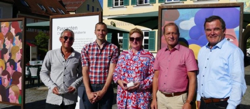 (ty) Unter dem Motto "Passanten" kann man derzeit in Geisenfeld zahlreiche Bilder des Künstlers Christoph Ruckhäberle besichtigen. Die Wander-Ausstellung macht noch bis Ende dieses Monats Station auf dem Stadtplatz. Bürgermeister Paul Weber freut sich, dass die Werke des in Pfaffenhofen geborenen und in Leipzig lebenden und schaffenden Malers jetzt in seiner Stadt ausgestellt werden können.