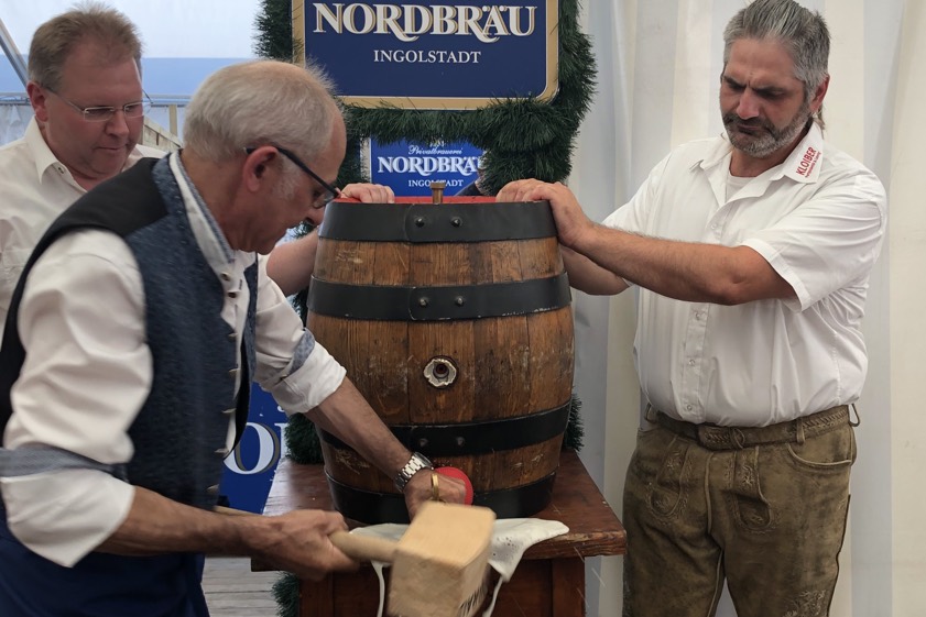 O'zapft is: Bürgermeister Attenberger benötigte drei Schläge.