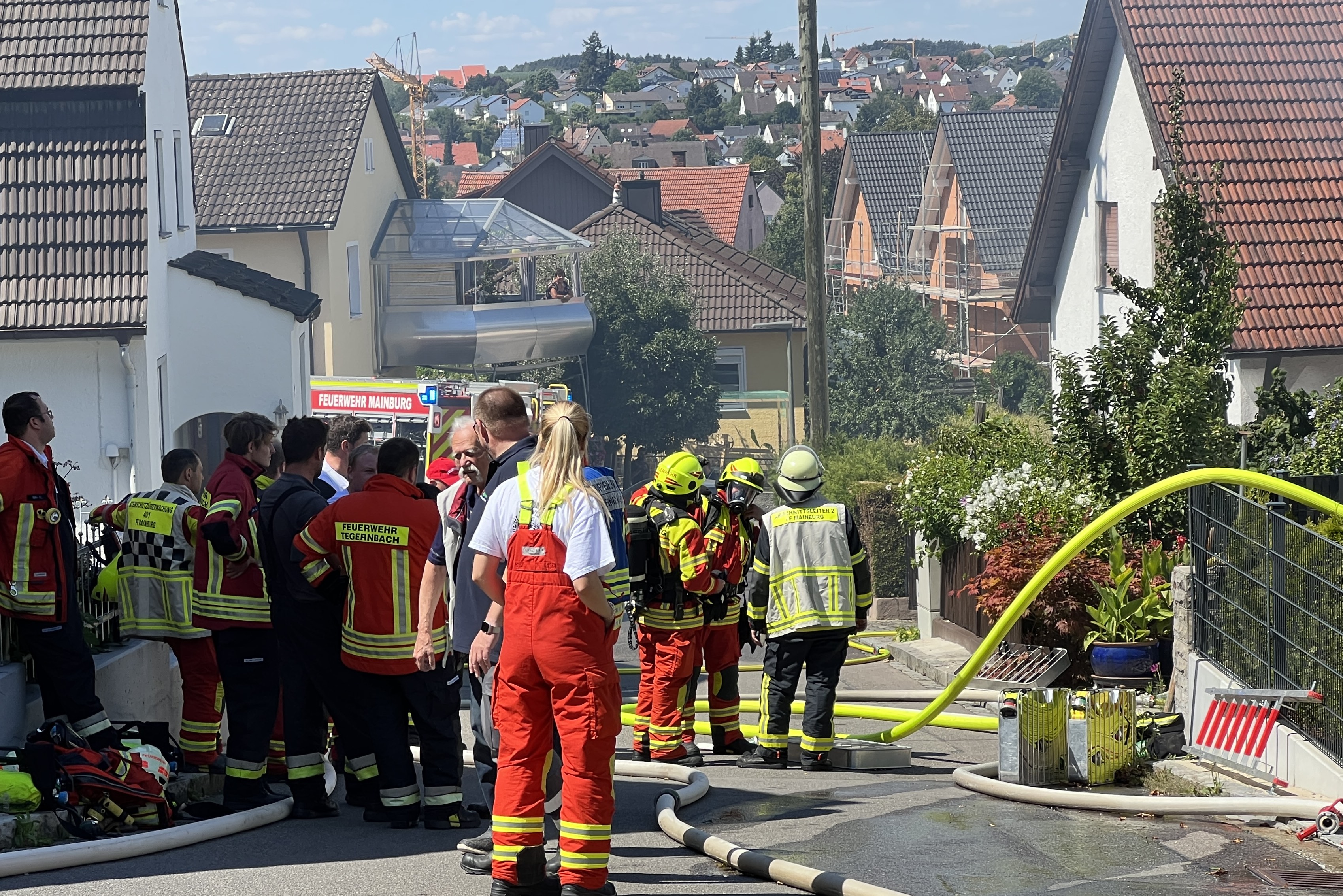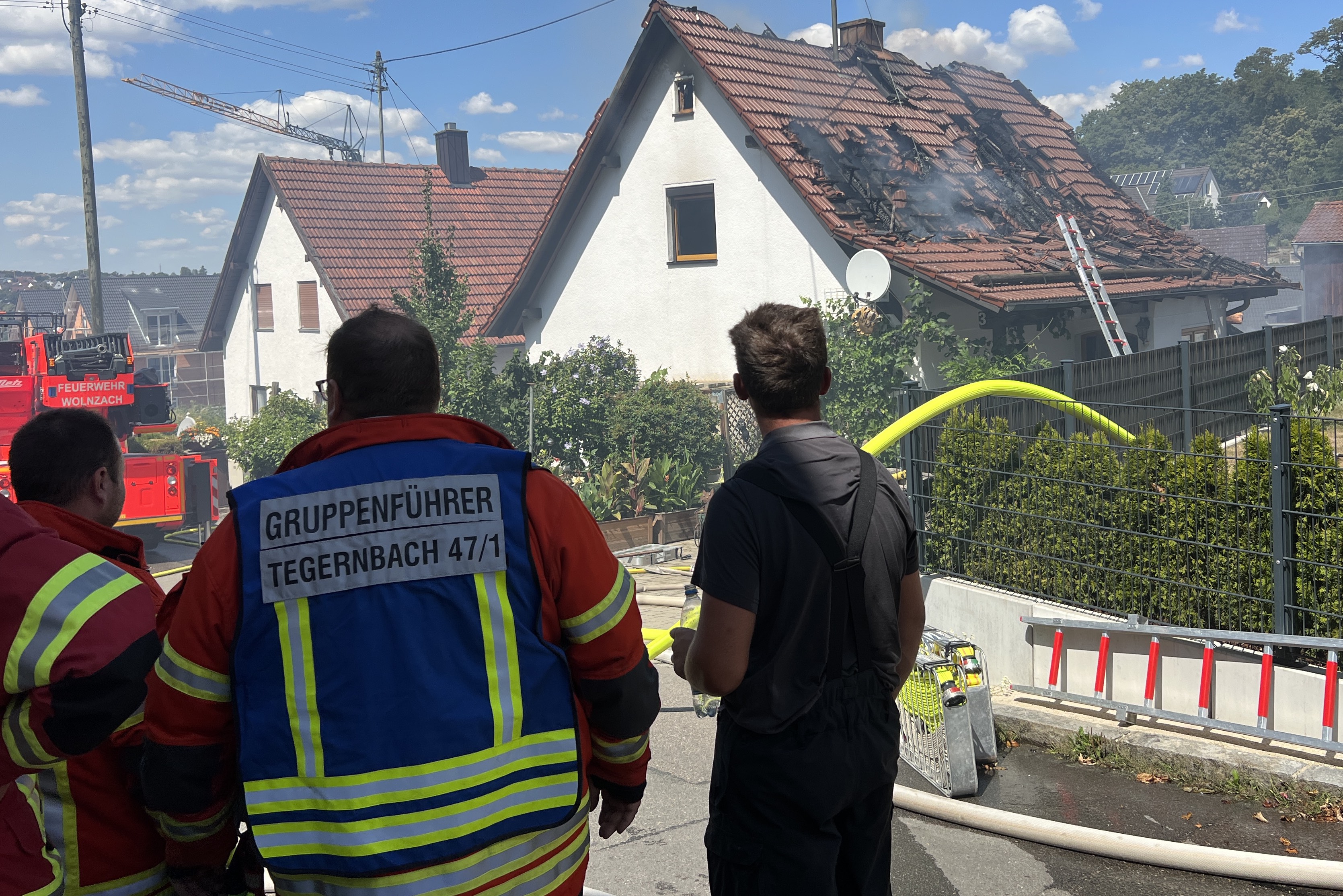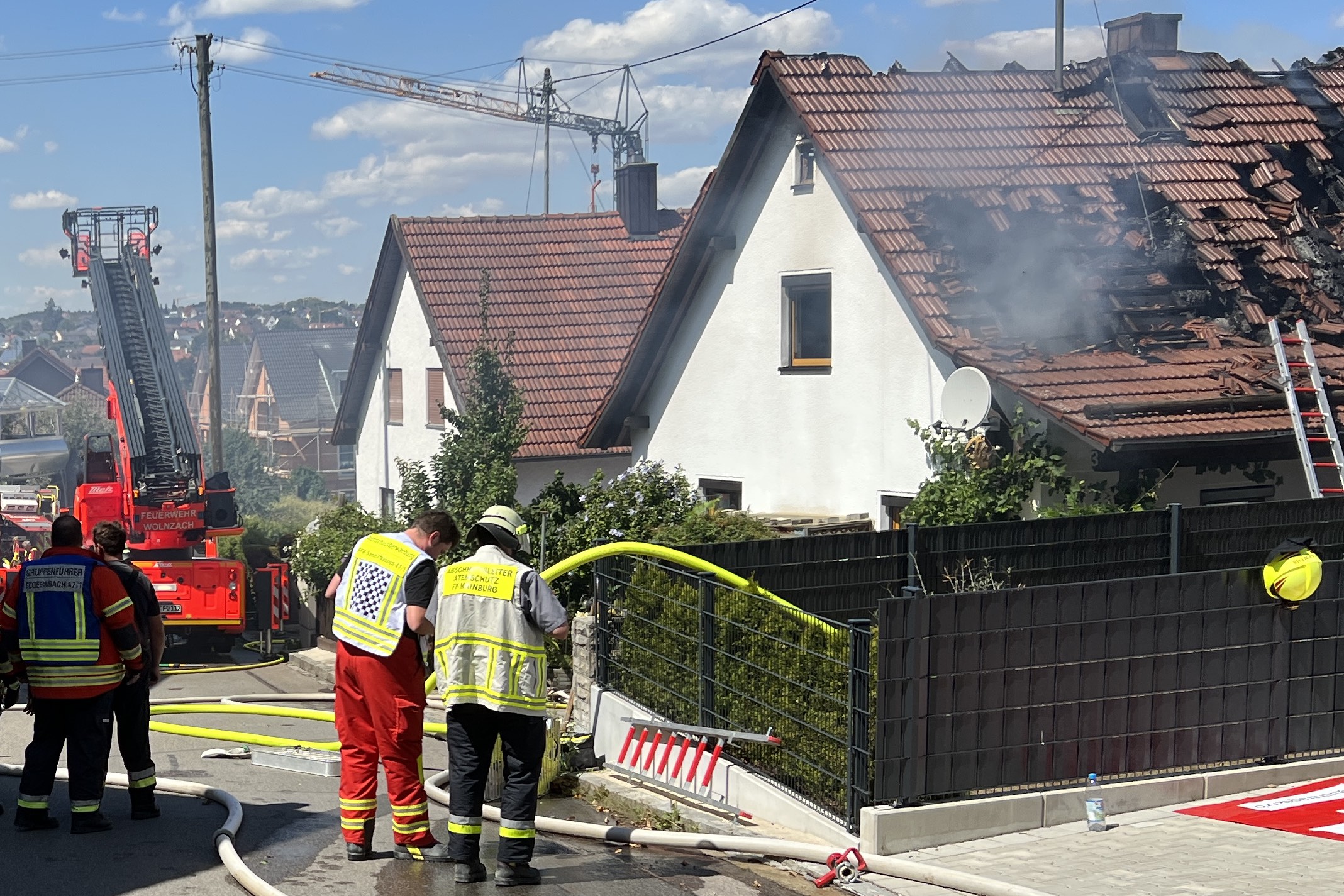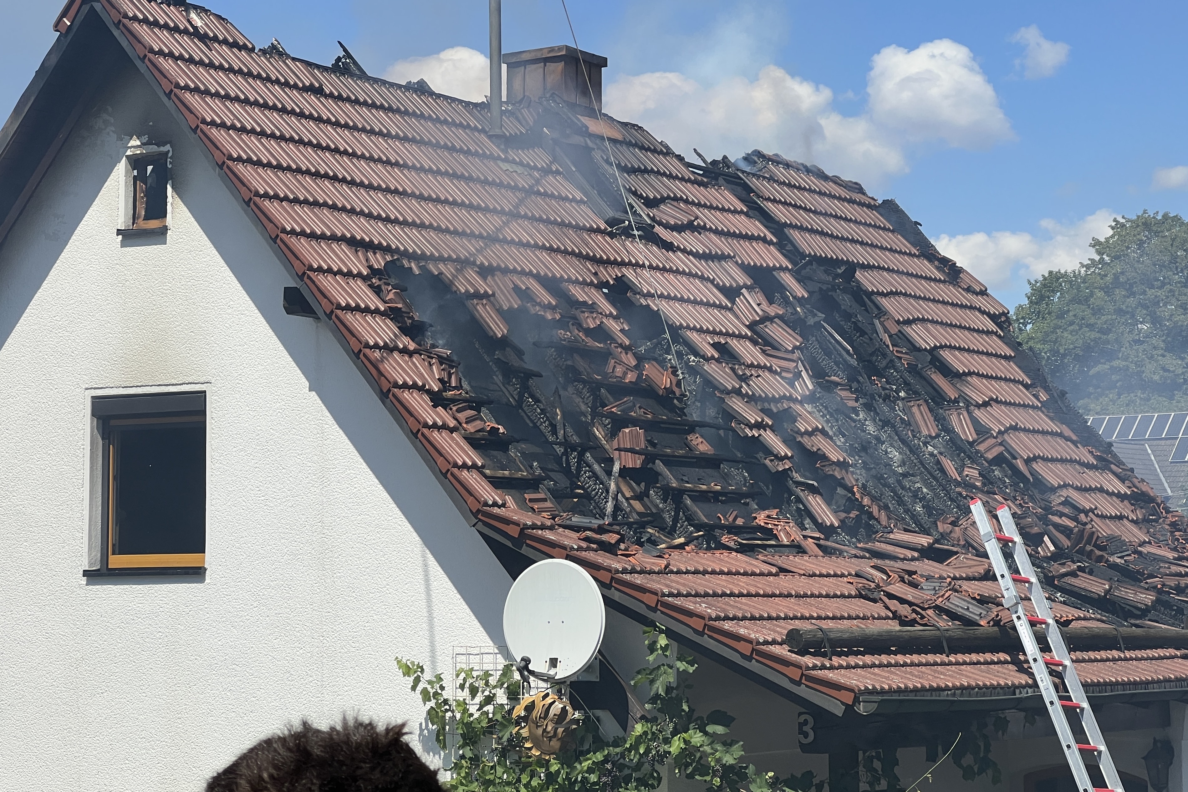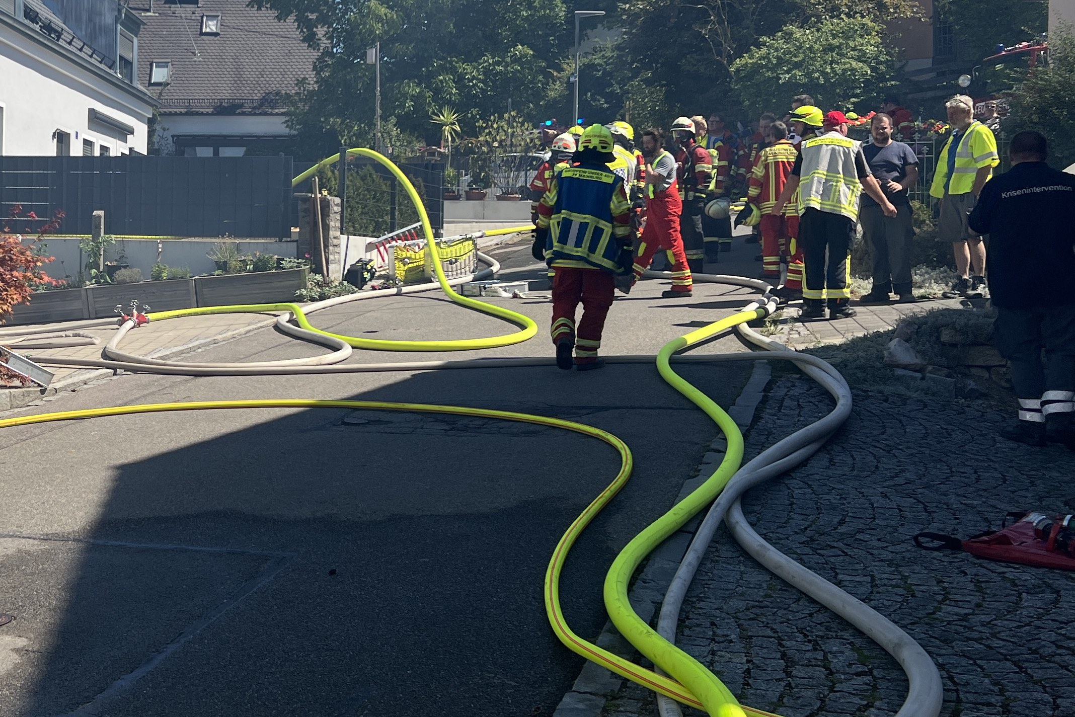 Nach Angaben der Polizei war kurz vor 11 Uhr über die integrierte Leitstelle das Feuer gemeldet worden, das möglicherweise auf zwei angrenzende Gebäude überzugreifen drohte. Zahlreiche Einsatzkräfte von Feuerwehr, Rettungsdienst und Polizei rückten an dem im Vollbrand stehenden Haus an der Straße "Sandelzhauser Gangsteig" an. Durch den raschen Einsatz der Floriansjünger habe ein Übergreifen der Flammen verhindert werden können, meldet die Polizei.
