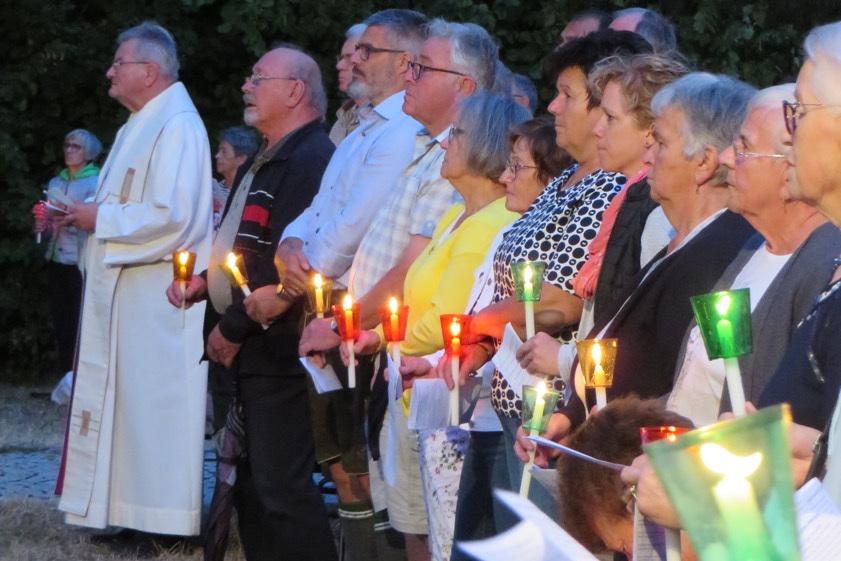 Der Bischof schloss seine Festpredigt, ohne den eigentlichen "Gastgeber" zu vergessen, ohne den wir nicht hier wären: "Maria, wir beglückwünschen dich zu deinem Sohn, der Mahl mit uns hält und der es erst möglich macht, dass wir deinen Geburtstag für den Himmel feiern können. Denn in seinem Licht schauen wir Dein Licht." Im Anschluss an die Andacht folgte die Lichter-Prozession mit Gebeten und Marien-Liedern rund um Steinerskirchen. Den Abend beendete Bischof Meier mit dem feierlichen Schlusssegen. Die Gläubige nahmen auch gesegnete Brote mit Gewürzen und Zutaten aus dem eigenen Bio-Anbau rund um Steinerskirchen mit nach Hause.