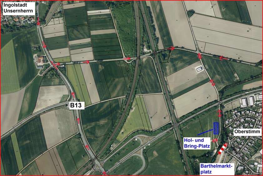 Bewährt habe sich beim Barthelmarkt im Jahr 2019 die damals neu eingerichtete "Hol- und Bringzone" für Besucher (siehe Luft-Aufnahme oben). Auch in diesem Jahr könnten Autofahrer bis zu 30 Minuten auf dem Parkplatz des SV Oberstimm, in der Nähe der Feuerwehr stehen, um Passagiere abzuliefern oder abzuholen. "Die bei Einfahrt entrichteten fünf Euro Pfand erhalten sie bei Ausfahrt zurück, wenn die Aufenthaltszeit nicht überschritten ist", wird dazu erklärt.