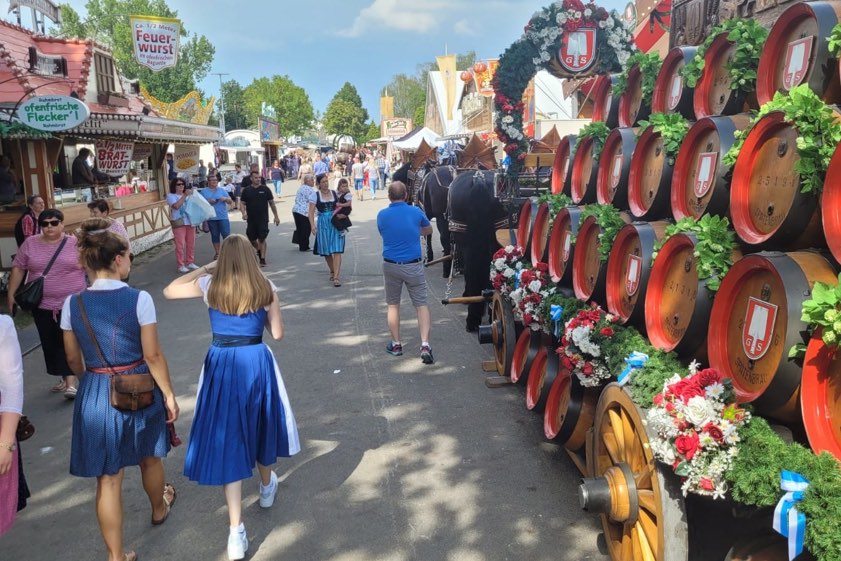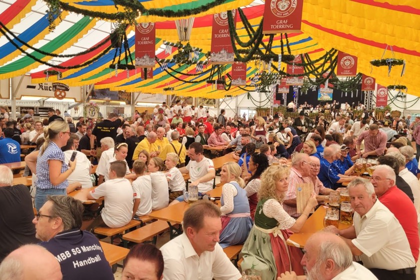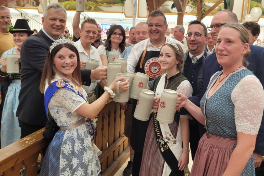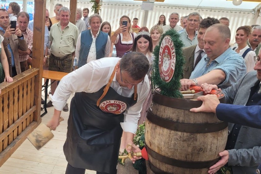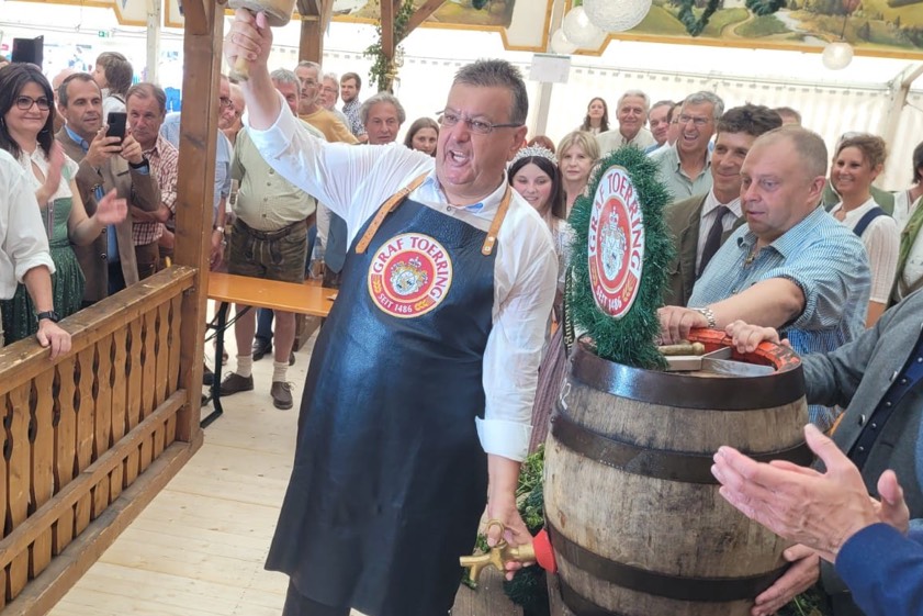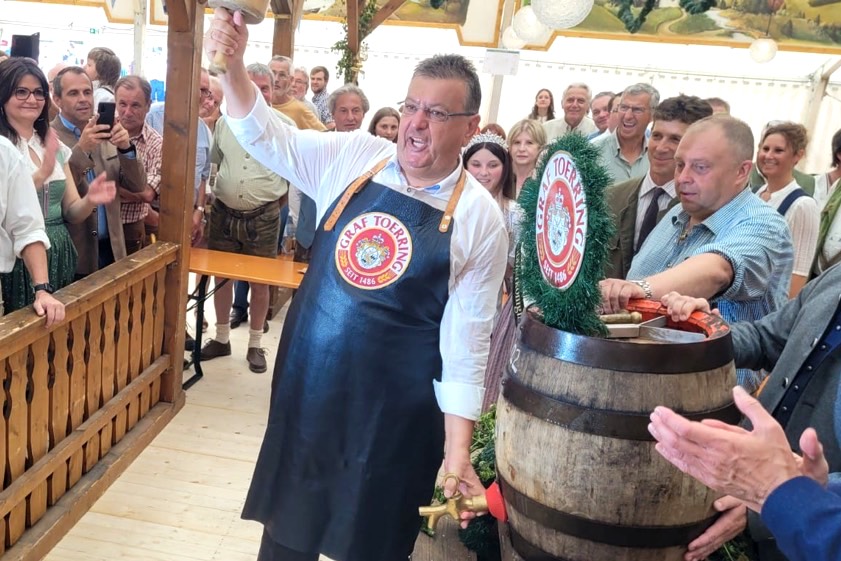 (ty) Zwei Jahre lang hatten Tausende von Barthelmarkt-Fans wegen der Corona-Pandemie auf eines der ältesten Volksfeste der Welt verzichten müssen. Heuer gibt es das Spektakel im Manchinger Ortsteil Oberstimm wieder. Nach dem Standkonzert und der Bier-Probe wurde am heutigen Nachmittag zum Fest-Gelände marschiert, wo Bürgermeister Herbert Nerb (FW) im Toerring-Zelt offiziell das erste Fass anzapfte und die Gaudi damit offiziell eröffnete. Gefeiert wird jetzt bis einschließlich Montag, 29. August. Die Maß Bier kostet 11,20 Euro. Für alkoholfreie Getränke, wie Apfelschorle oder Mineralwasser, muss man 8,20 Euro pro Liter hinlegen.