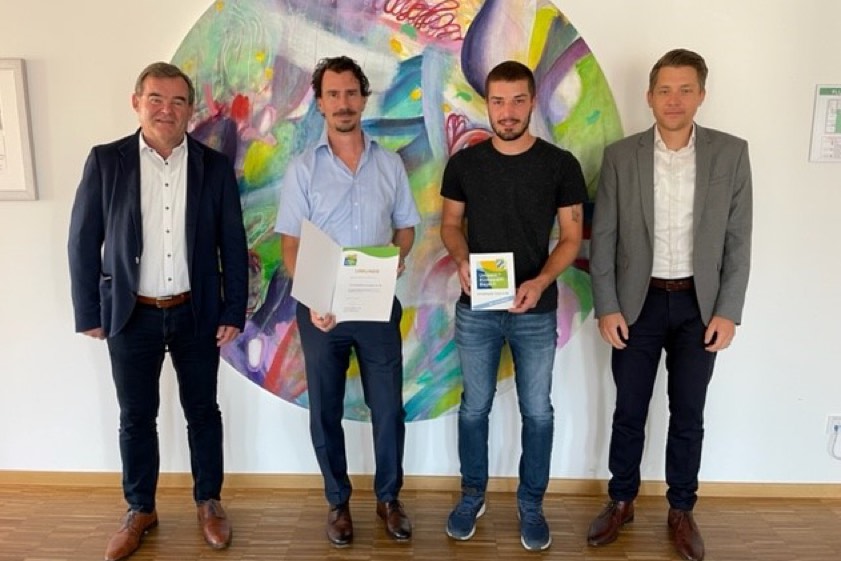 (ty) Die "2R Kunststofftechnik GmbH & Co. KG" aus Schweitenkirchen nimmt am bayerischen Umwelt- und Klima-Pakt teil. Geschäftsführer Dirk Fernengel und der Umwelt-Management-Beauftragte Markus Stanglmayr haben vom Pfaffenhofener Landrat Albert Gürtner (FW) die entsprechende Urkunde erhalten (Foto oben). Gürtner sowie Abteilungs-Leiter Michael Beckmann gratulierten der ganzen Firma zu dieser Auszeichnung und dankten ihnen für ihren Beitrag zum Umwelt- und Klimaschutz. "Im Rahmen des Umwelt- und Klima-Pakts Bayern hat sich das Unternehmen zu qualifizierten, freiwilligen Umwelt-Leistungen verpflichtet und wurde somit vom bayerischen Staatsministerium für Umwelt, Gesundheit und Verbraucherschutz als Teilnehmer bestätigt", erklärt das Landratsamt.