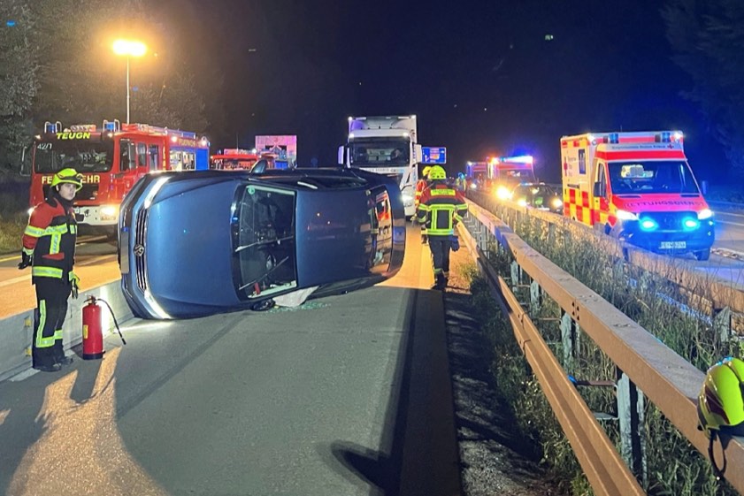 Der Pkw-Lenker sowie dessen 30 Jahre alte Beifahrerin und das sieben Jahre alte Kind trugen nach Angaben der Polizeiinspektion aus Mainburg jeweils leichte Verletzungen davon. Sie wurden vom Rettungsdienst in ein Krankenhaus gebracht. Der Sachschaden wurde auf insgesamt 16 000 Euro geschätzt. Der Pkw musste vom Abschlepp-Dienst geborgen werden. Die Autobahn war für etwa 1,5 Stunden zum Teil gesperrt. Die Feuerwehren aus Bad Abbach und Teugn waren vor Ort, kümmerten sich unter anderem um verkehrslenkende Maßnahmen und das Ausleuchten der Unfallstelle.