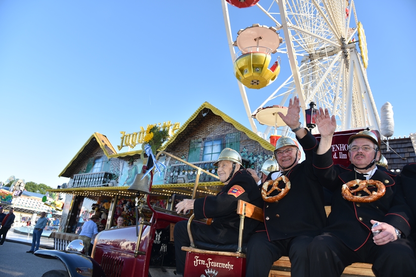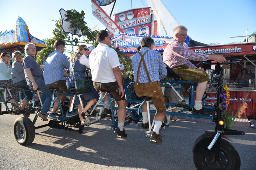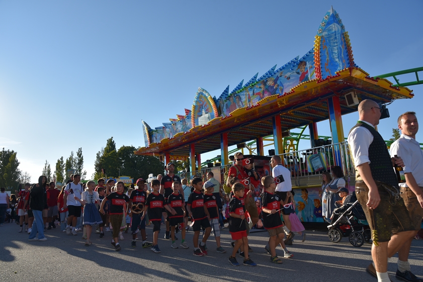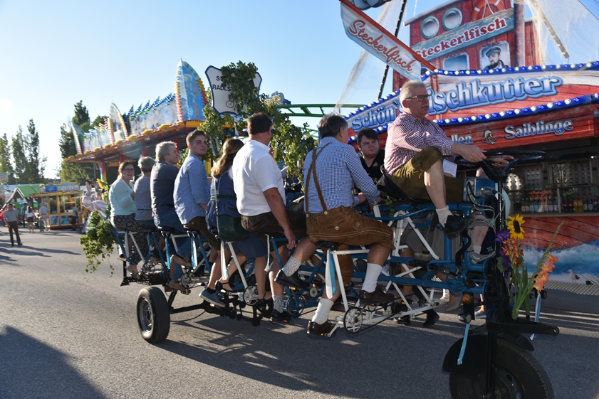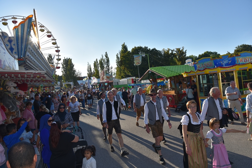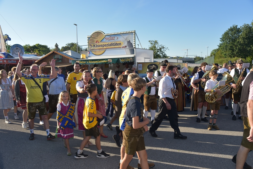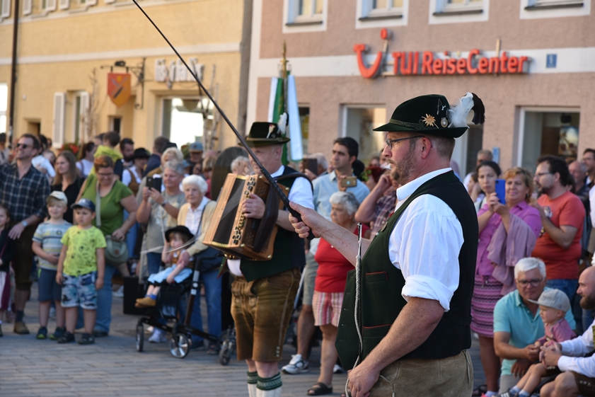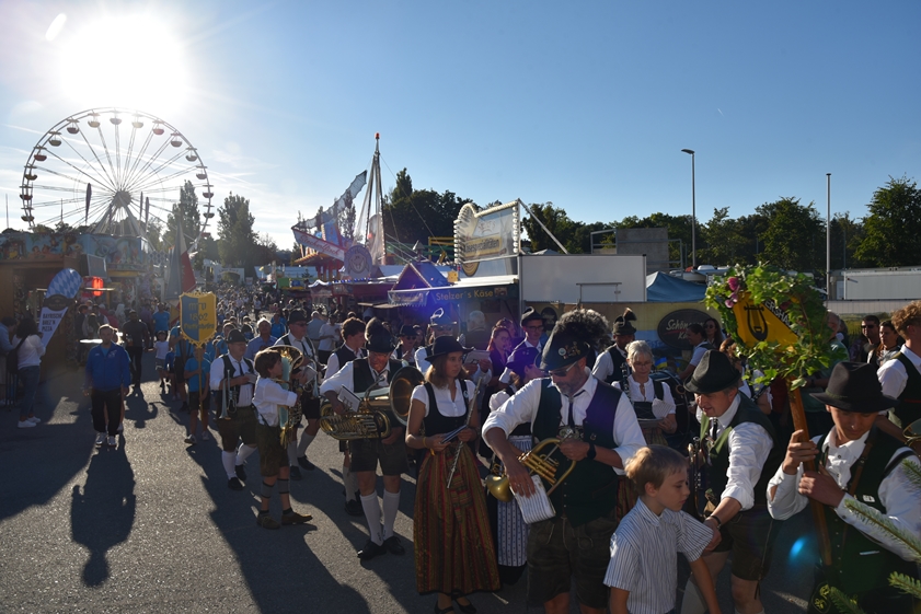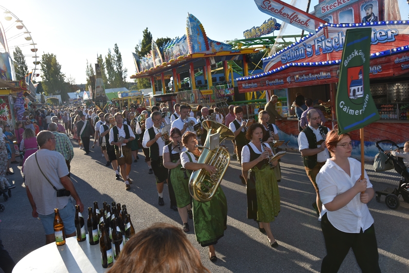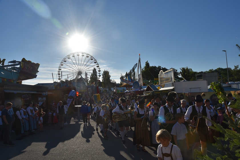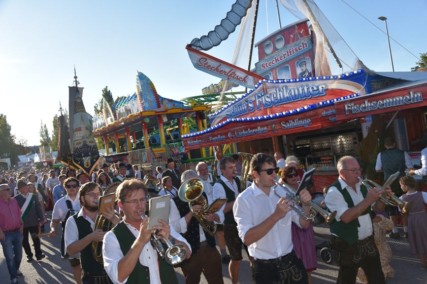 - 13.30 Uhr: Standkonzert mit verschiedenen Kapellen und den "Goaßlschnoizern" vor dem Rathaus, anschließend Ausmarsch zum Volkfestplatz.