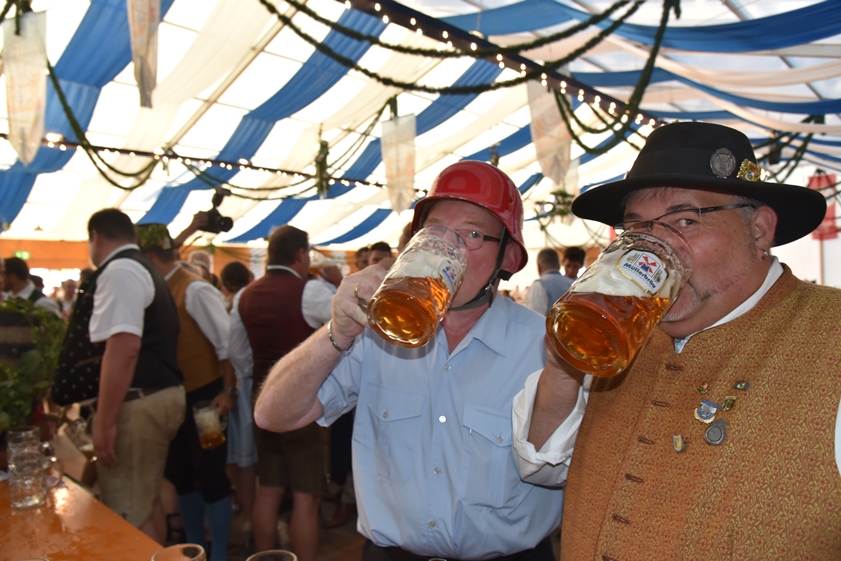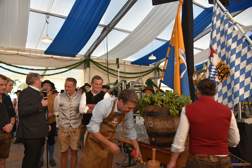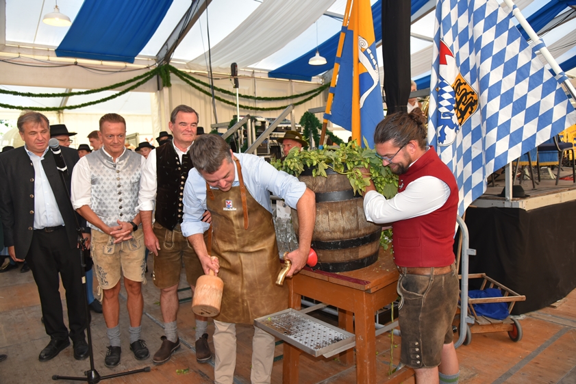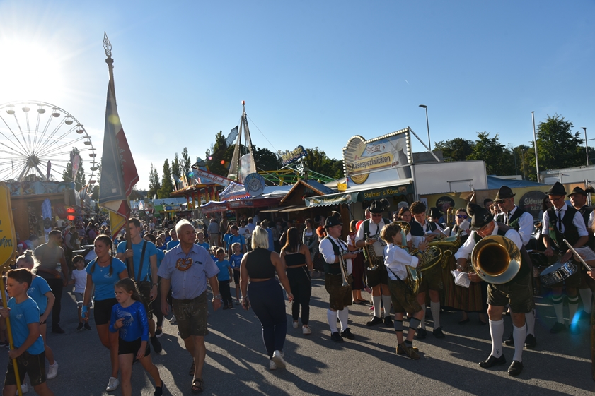 (ty) Das Pfaffenhofener Volksfest ist eröffnet! Das Spektakel begann am späten Freitagnachmittag, wie üblich, mit der Zusammenkunft der zahlreichen Vereins-Abordnungen und Ehrengäste bei einem Standkonzert auf dem Hauptplatz. Gemeinsam wurde dann, begleitet von Musikanten und Böllerschützen, durch die Innenstadt zum Festgelände an der Ingolstädter Straße marschiert. Nach zwei Jahren corona-bedingter Pause hieß es hier endlich wieder:"O'zapft is!". Bürgermeister Thomas Herker (SPD) zapfte routiniert das erste Fass Festbier an. Jetzt wird in der Kreisstadt kräftig gefeiert, und zwar bis einschließlich 13. September. Die Maß Bier kostet zwischen 9,60 und 9,80 Euro. Wir haben eine große Bilder-Galerie mit Impressionen vom Volksfest-Auftakt zusammengestellt (siehe unten).