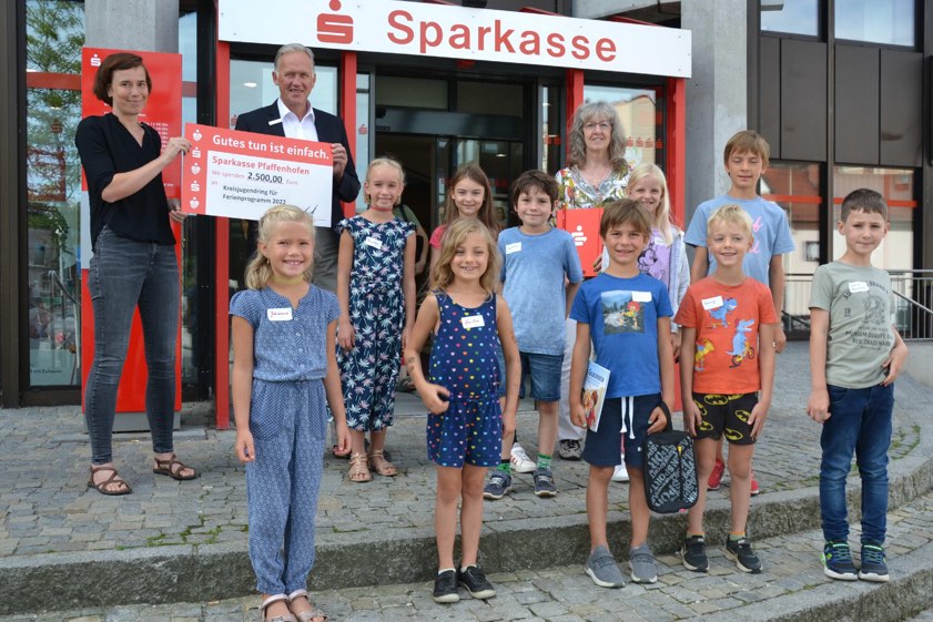 (ty) Einen Blick hinter die Kulissen der Pfaffenhofener Sparkasse haben im Rahmen des vom Kreisjugendring (KJR) angebotenen Ferien-Programms insgesamt 20 Mädchen und Buben geworfen. Aber auch die Verantwortlichen des KJR durften sich freuen: Michael Hoyer, stellvertretendes Vorstands-Mitglied des Geldinstituts, überreichte nämlich einen Spenden-Scheck über 2500 Euro, der von KJR-Geschäfts-Leiterin Lena Ruckhäberle in Empfang genommen wurde.