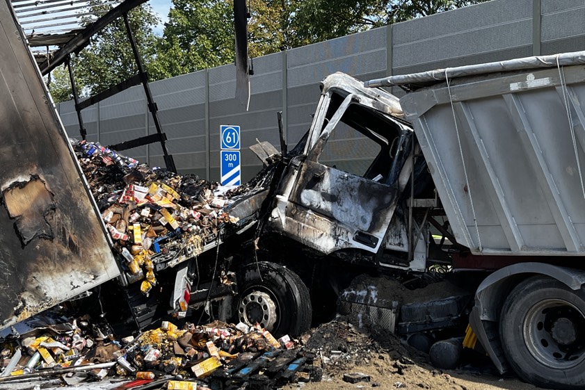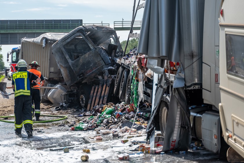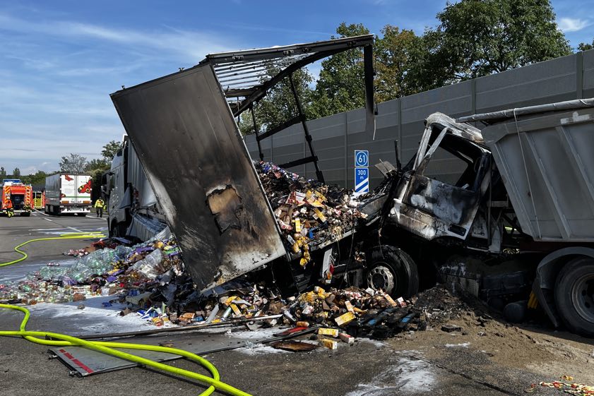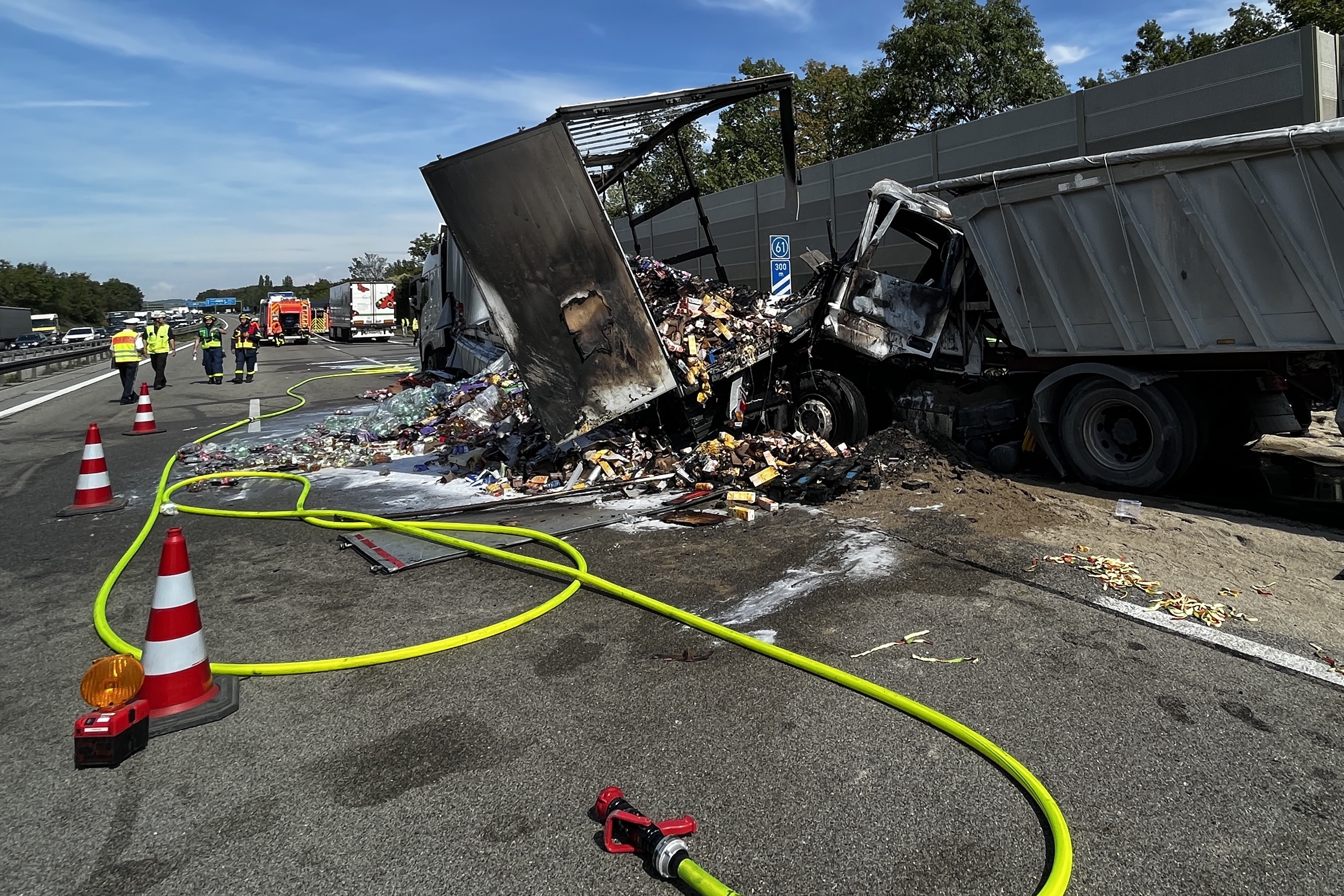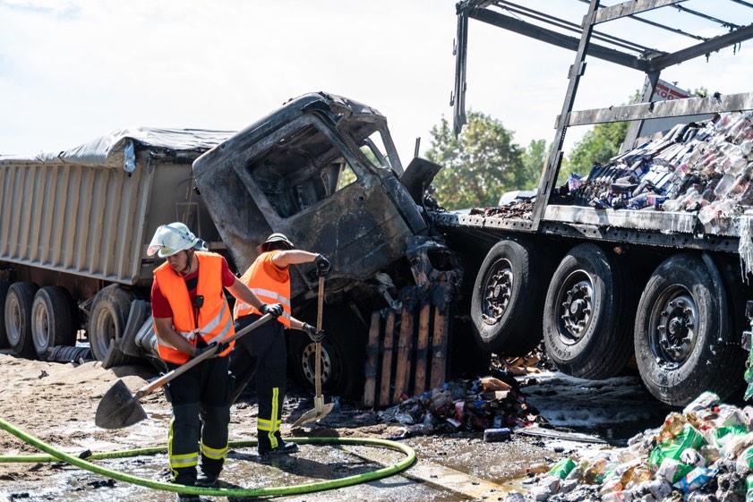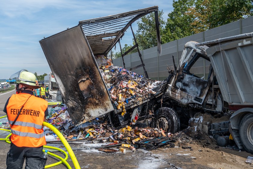Dieser – den Angaben zufolge mit 20 Tonnen Stückgut beladene – Sattelzug sei daraufhin durch den Aufprall gegen ein davor fahrendes Wohnwagen-Gespann geschoben worden. Das Wohnmobil-Gespann sei wiederum gegen einen davor befindlichen Sattelzug mit Nürnberger Zulassung geschoben worden. "Durch den Aufprall des Sattel-Kippers gerieten dessen Führerhaus und der Auflieger des Ingolstädter Zuges in Brand, wobei sich die 60-Jährige noch schwerverletzt im Fahrzeug befand", heißt es im Bericht der Verkehrspolizei. Zwei Ersthelfern sowie Streifenbeamten der Polizei sei es gelungen, die 60-Jährige unmittelbar nach dem Unfall aus dem Gurt zu befreien und aus ihrem brennenden Fahrzeug zu retten.