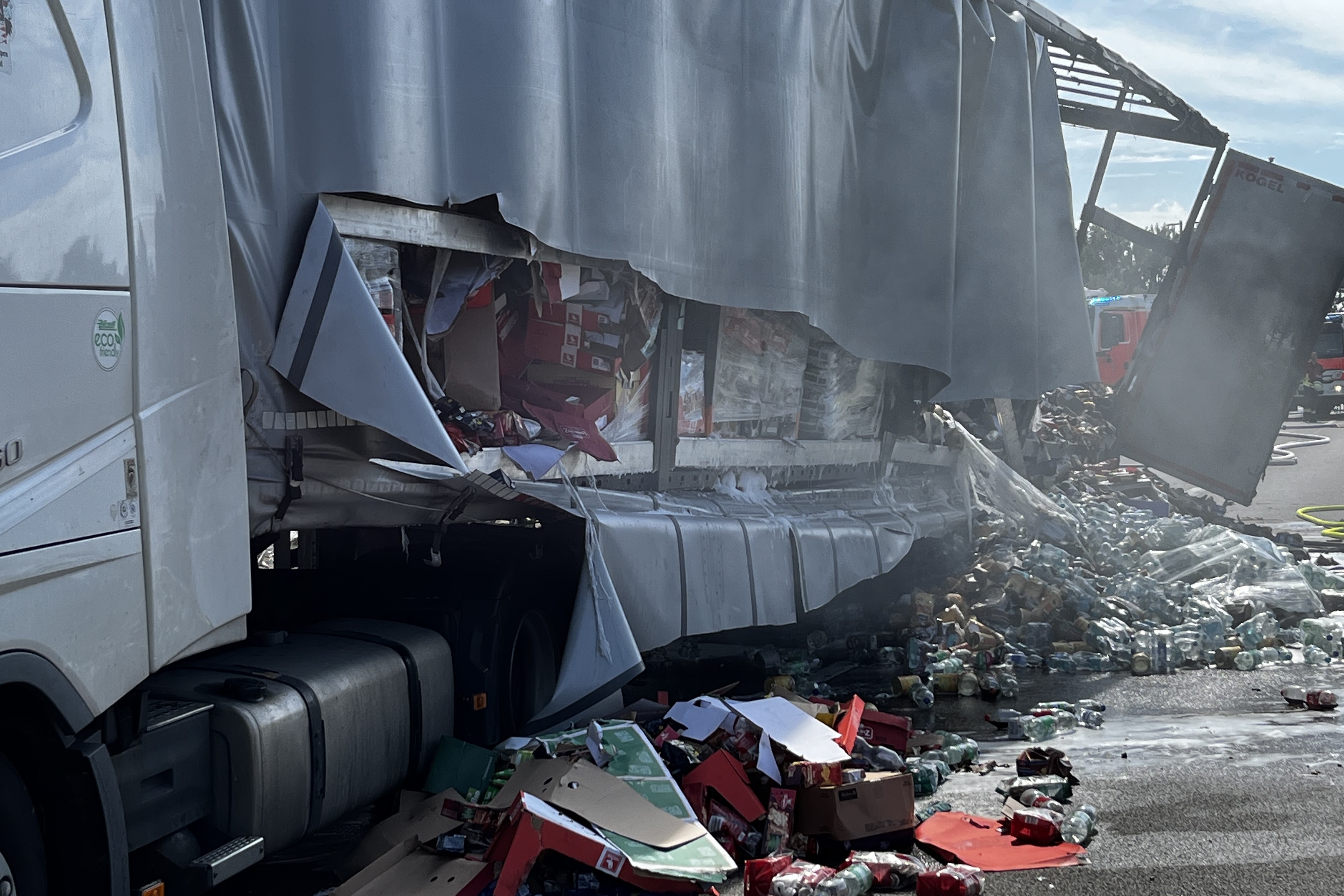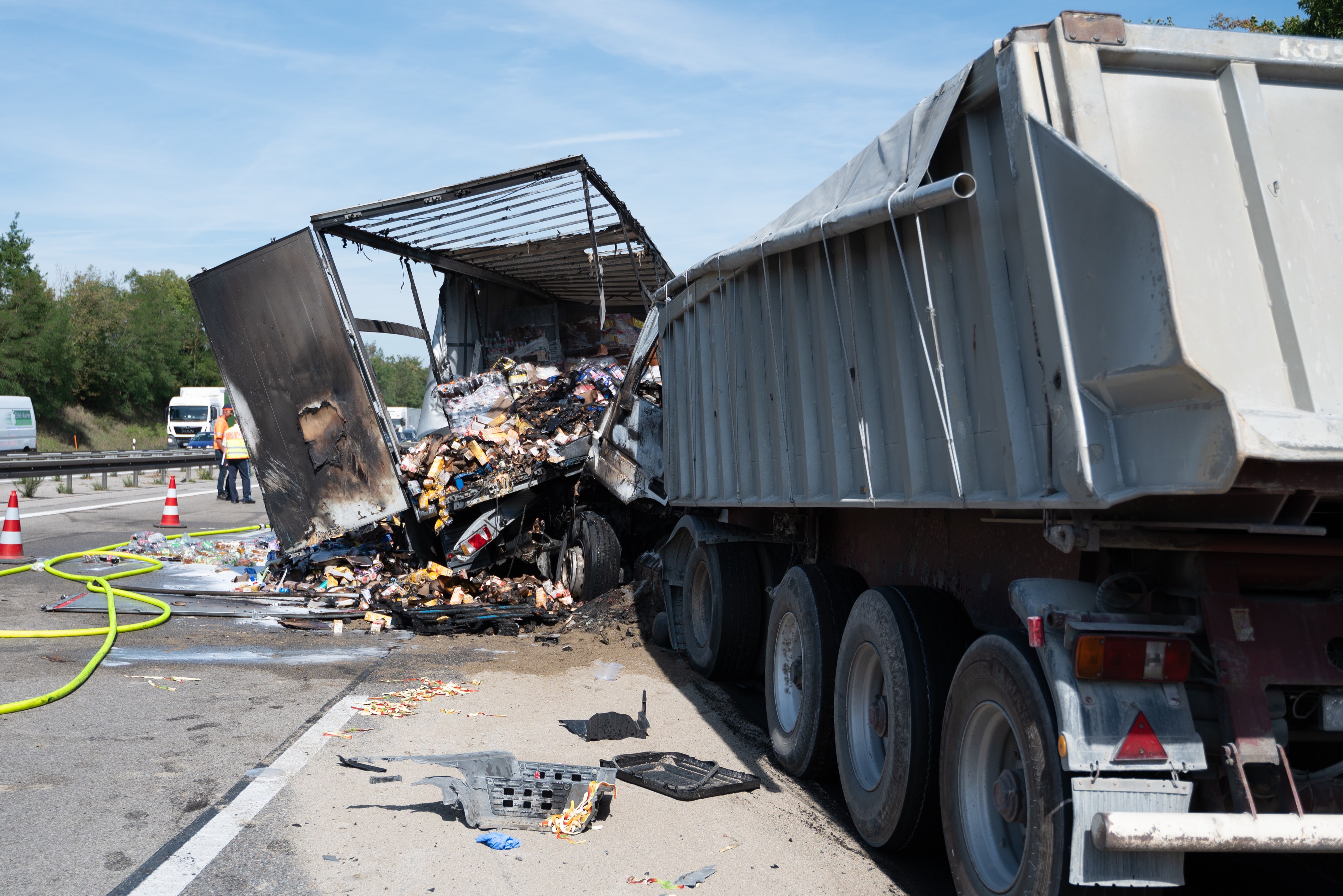 Sie prallte mit ihrem Kipper ins Heck eines Sattelzugs und wurde schwer verletzt. Weitere Fahrzeuge verwickelt. A9 in Richtung Norden seit Stunden komplett gesperrt.