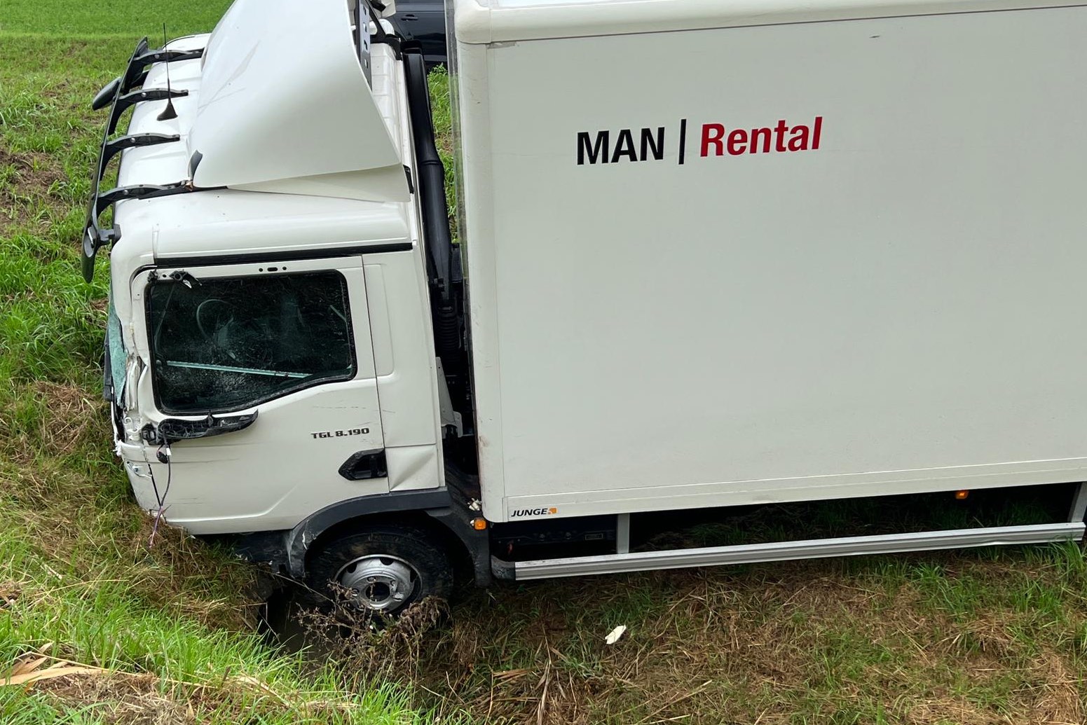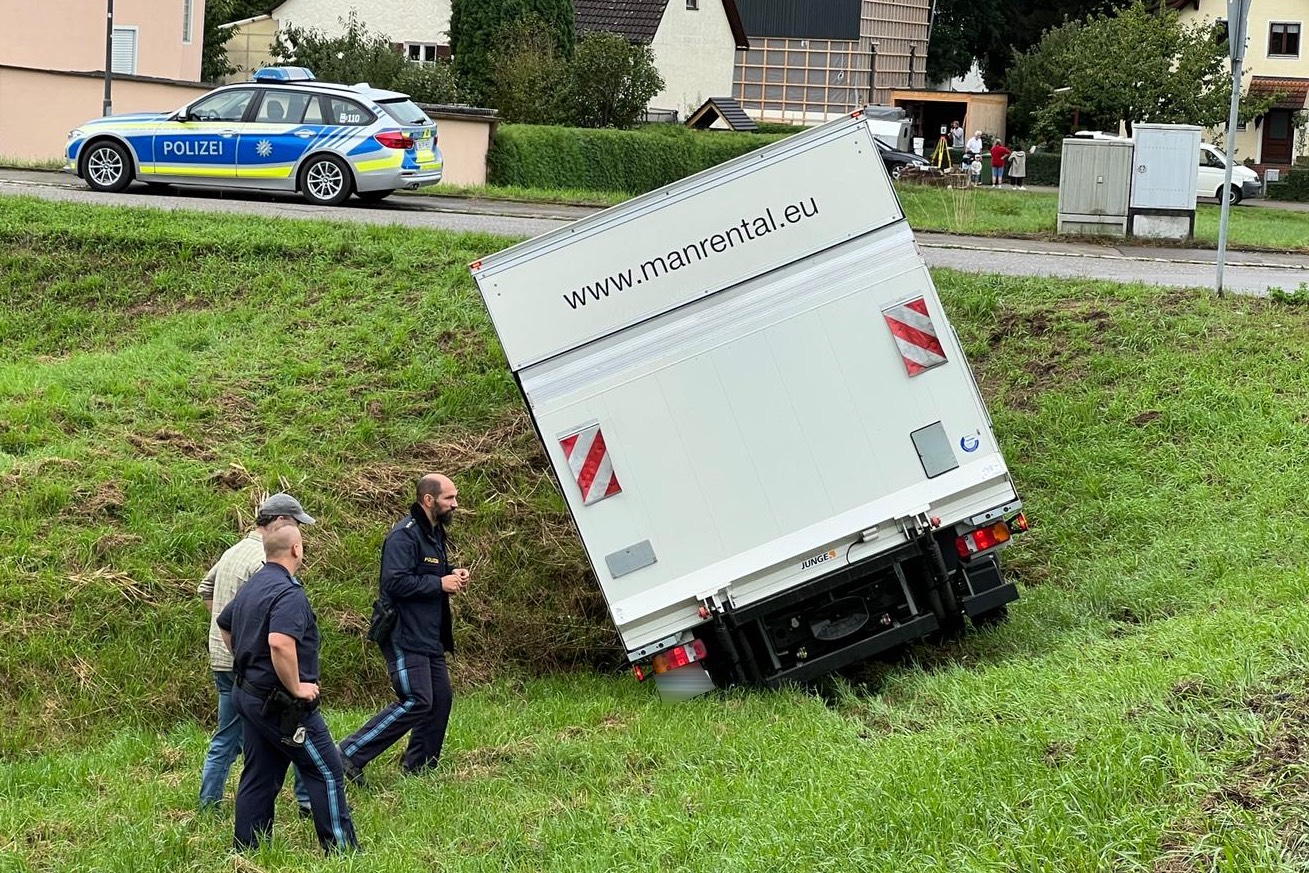 Eine 43 Jahre alte Frau aus dem Gemeinde-Bereich von Schweitenkirchen, die dem Lkw mit einem VW-Multivan entgegengekommen sei, habe noch versucht, nach rechts auszuweichen. Dadurch habe sie einen Frontal-Zusammenstoß mit dem 7,5-Tonner verhindern können. Der VW-Bus sei aber von dem Lkw an der linken Seite erfasst worden. Dadurch sei der Multivan nach rechts von der Straße geschleudert worden; er sei schließlich in der Böschung zum Stehen gekommen. Der Lastwagen sei nach diesem Zusammenstoß noch weiter nach links geraten und daraufhin die Böschung hinuntergefahren. Hier sei der Laster schließlich gegen einen Wasser-Durchlass geprallt und an dem Rohr zum Stehen gekommen.
