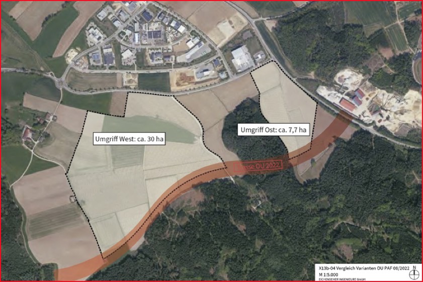 Das Gebiet docke an die lang ersehnte, künftige Südumgehung an. So erfolge Gewerbe-Entwicklung dort, wo ohnehin schon Eingriffe erfolgen sollen. Der Bau der südlichen Ortsumgehung werde vom Bahnhof in Richtung Autobahn A9 durch das staatliche Bauamt aus Ingolstadt immer konkreter. Die 3,6 Kilometer lange Trasse solle die Münchener Straße (B13), die Weiherer und Moosburger Straße sowie die Ortsteile Weihern und Eberstetten von Durchgangs-Verkehr und Lärm entlasten.
