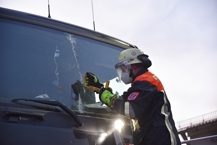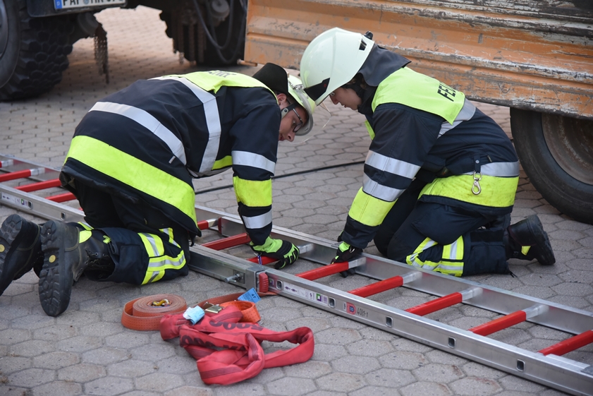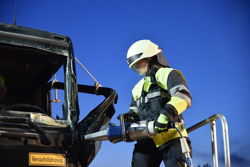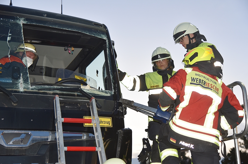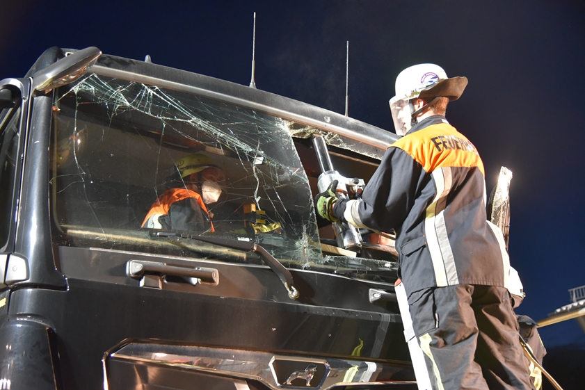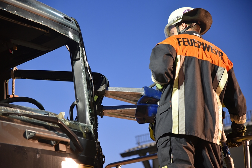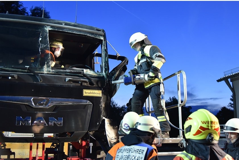 "Die Herausforderung bei Unfällen mit Lkw-Beteiligung ist die patientengerechte Rettung aus größerer Höhe als beim Pkw – und die zuvor notwendige Befreiung des Patienten aus einem stabilen Fahrzeug mit schwereren Bauteilen und anderer Verarbeitung", erklärt Lehner. Durch die verstärkten Frontbereiche gerieten etwa die Schneidgeräte und damit auch deren Bediener an die Belastungsgrenze. Außerdem: "Die Verletzungs-Muster der Verunglückten im Lkw sind häufig auch komplett anders als bei im Auto verunfallten Menschen", so Lehner. Geübt werde aber auch die Eigensicherung. Und: "Neben der Absicherung sind der Brandschutz zu beachten, die Ladungs-Sicherung und viele andere, sehr komplexe Dinge."
