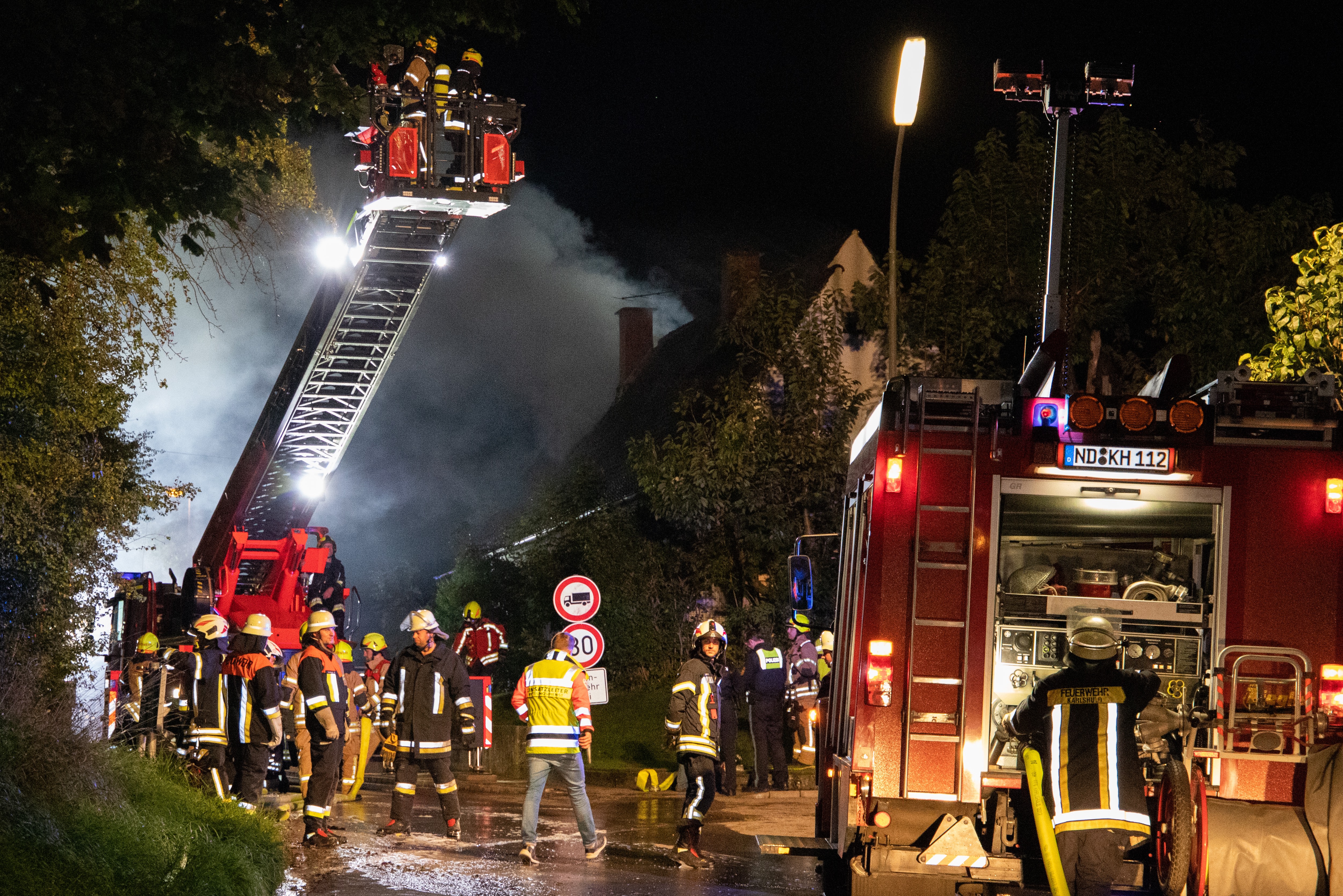"Gegen Mitternacht war der alleine anwesende 67-jährige Bewohner des Hauses am Kaltenherberger Weg auf das Feuer aufmerksam geworden, das sich vom Dachboden her ausbreitete", erklärte das Polizeipräsidium Oberbayern-Nord. Der Mann habe die Feuerwehr verständigt und sich unverletzt ins Freie geflüchtet. Trotz des schnellen Eingreifens der Rettungskräfte sei hoher Sachschaden entstanden. Das Dachgeschoss des Hauses gelte derzeit als einsturzgefährdet. Die Untersuchungen der Kripo zur Klärung der Brand-Ursache laufen.