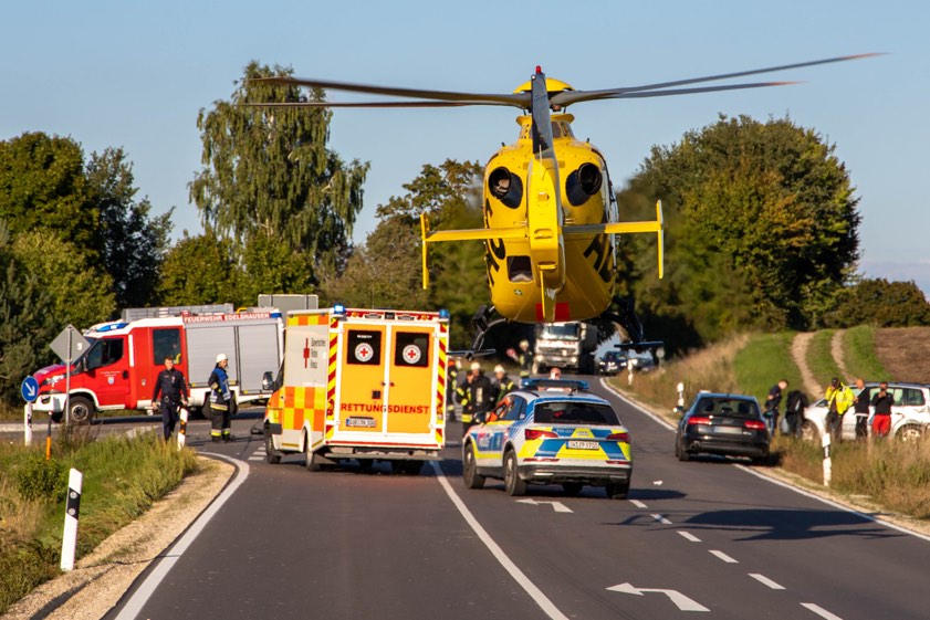 (ty) Im Gemeinde-Bereich von Brunnen im Nachbar-Landkreis Neuburg-Schrobenhausen hat sich am gestrigen Nachmittag ein Verkehrsunfall ereignet, bei dem ein 28 Jahre alter Motorrad-Fahrer schwere Verletzungen erlitten hat. Der Schrobenhausener kollidierte mit einem Pkw, dessen 53 Jahre alter Fahrer beim Rechts-Abbiegen die Vorfahrt missachtet hatte. Der Verunglückte musste nach der Erstversorgung vor Ort per Rettungs-Helikopter in ein Krankenhaus gebracht werden. Auch die Feuerwehr war vor Ort im Einsatz.