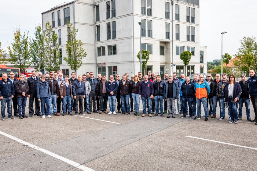 Am Vormittag stand die Besichtigung der staatlichen Feuerwehrschule in der Domstadt auf dem Programm. Die Führung umfasste hier unter anderem die für die Hintergrund-Arbeiten erforderlichen Räumlichkeiten der Gerätewarte, das Übungs-Gelände mit neu errichteten Objekten – zum Beispiel ein Mehrfamilienhaus in Holzbauweise – sowie als Highlight den seit Beginn der Corona-Pandemie stark ausgebauten Bereich "Virtual Reality". Für letzteren Bereich wurden professionelle Aufnahme-Studios mit Kamera-, Licht- und Tontechnik eingerichtet, sodass diverse Online-Lehrgänge abgehalten werden können.