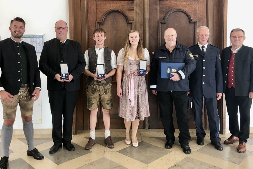 Bayerische Rettungs-Medaille für Wolfgang Hagl, Maximilian Hagl und Verena Neumann, Christophorus-Medaille für Karl-Heinz Soost und Andrea Kornprobst.