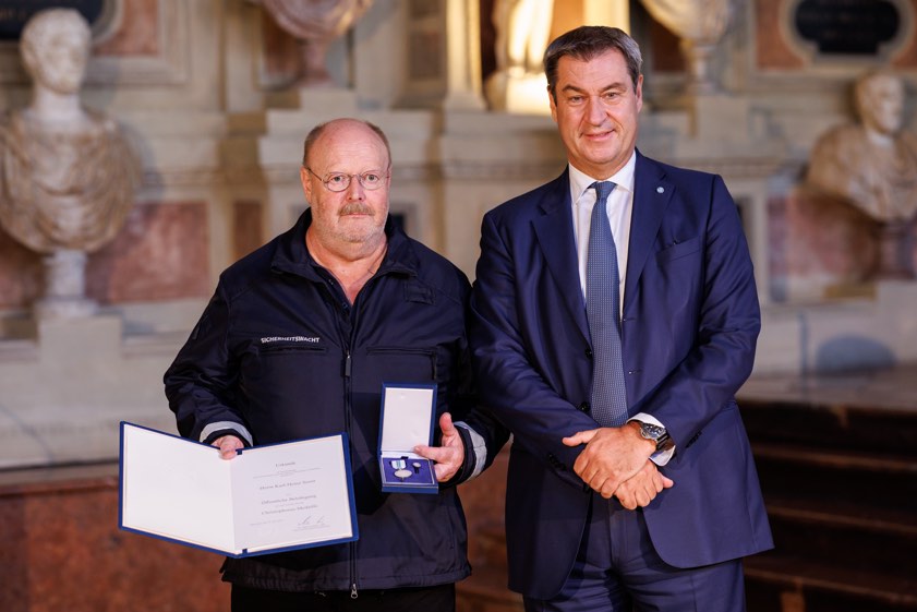 (ty) Ministerpräsident Markus Söder hat am gestrigen Nachmittag im Rahmen einer Feierstunde im Antiquarium der Münchner Residenz die bayerische Rettungs-Medaille an insgesamt 37 Personen sowie die Christophorus-Medaille an insgesamt 36 Personen vergeben. Unter den geehrten sind auch zwei Frauen und drei Männer aus dem Landkreis Pfaffenhofen: Wolfgang Hagl, sein Sohn Maximilian Hagl und Verena Neumann erhielten für eine Rettungs-Tat unter Einsatz ihres Lebens die bayerische Rettungs-Medaille. Karl-Heinz Soost und Andrea Kornprobst wurden mit der Christophorus-Medaille bedacht.