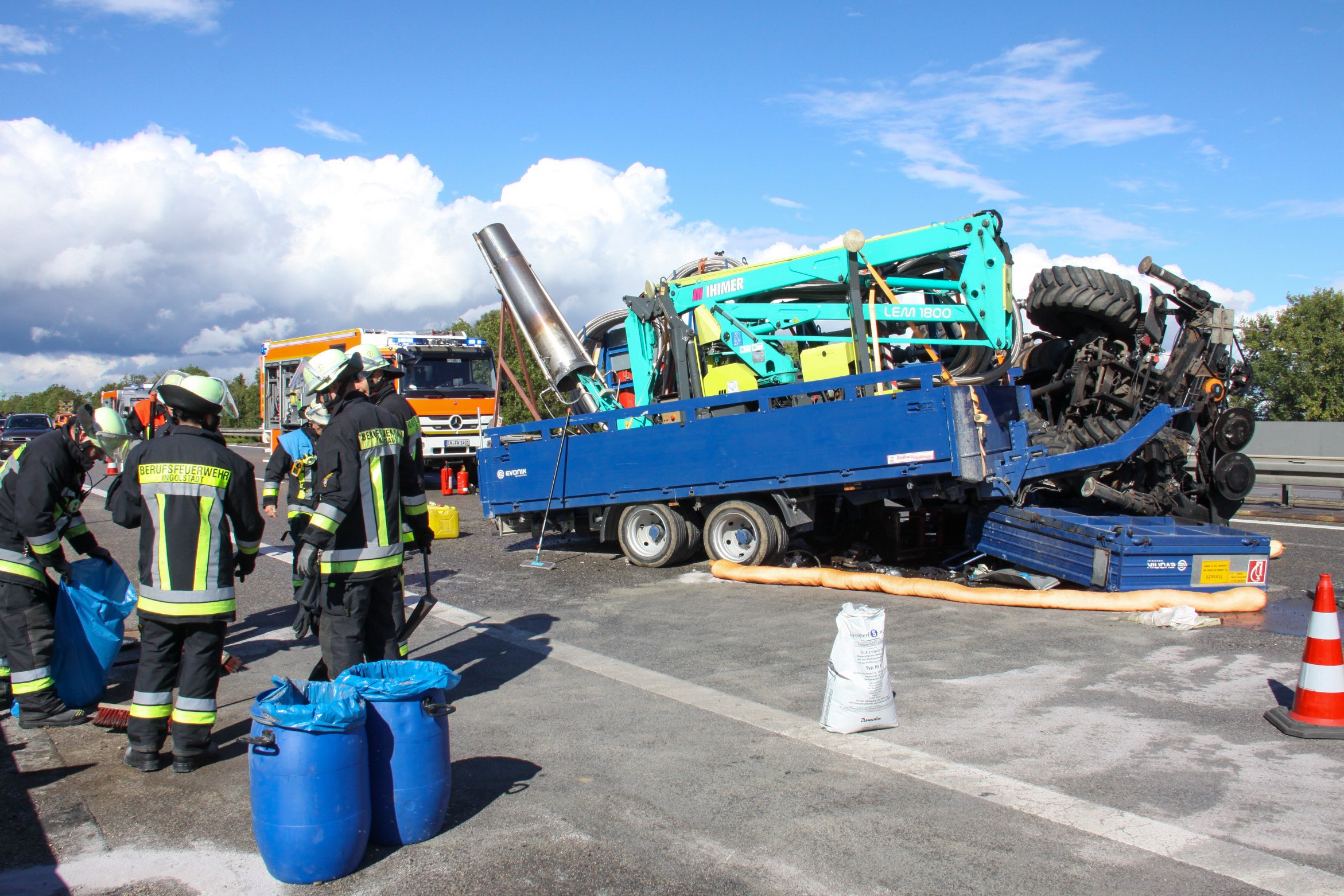 Wegen der Bergungs-Arbeiten und der nötigen Reinigungs-Maßnahmen musste auch die Standspur vorübergehend gesperrt werden. "Es wurde deshalb eine Ausleitung an der Anschlussstelle Ingolstadt-Süd eingerichtet", erklärte ein Polizei-Sprecher. Trotzdem sei es bis gegen 19 Uhr zu Rückstauungen auf einer Länge von zeitweise mehr als 15 Kilometern gekommen. Bei der Absicherung der Unglücksstelle und bei der Ausleitung des Verkehrs wurden die Polizisten von der Berufsfeuerwehr aus Ingolstadt und von der zuständigen Autobahn-Meisterei unterstützt.