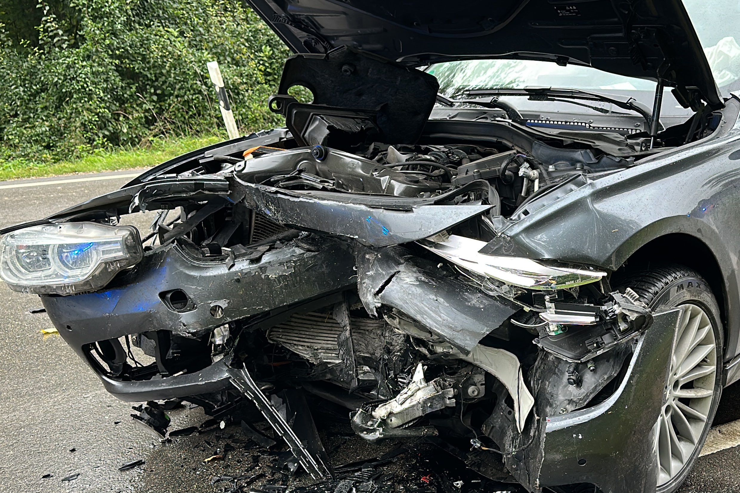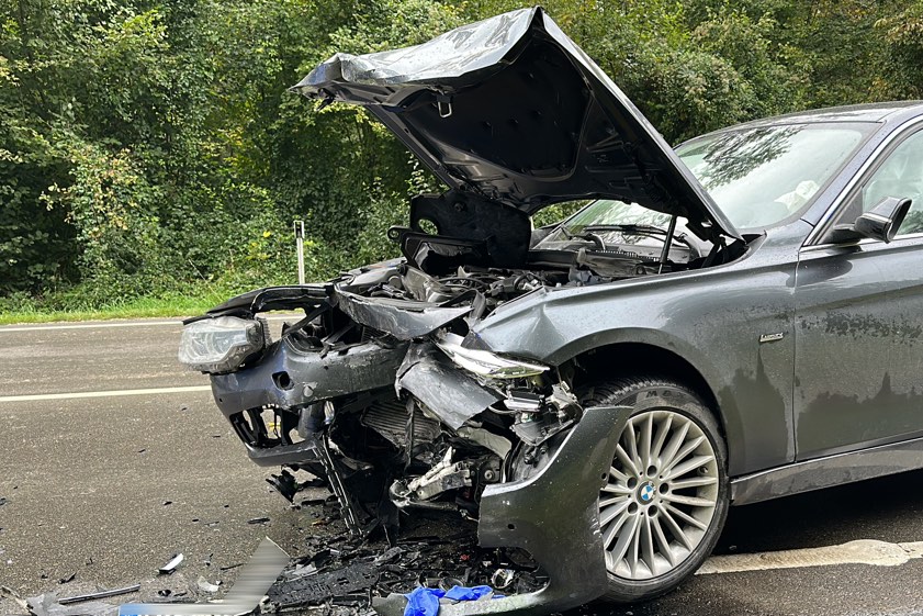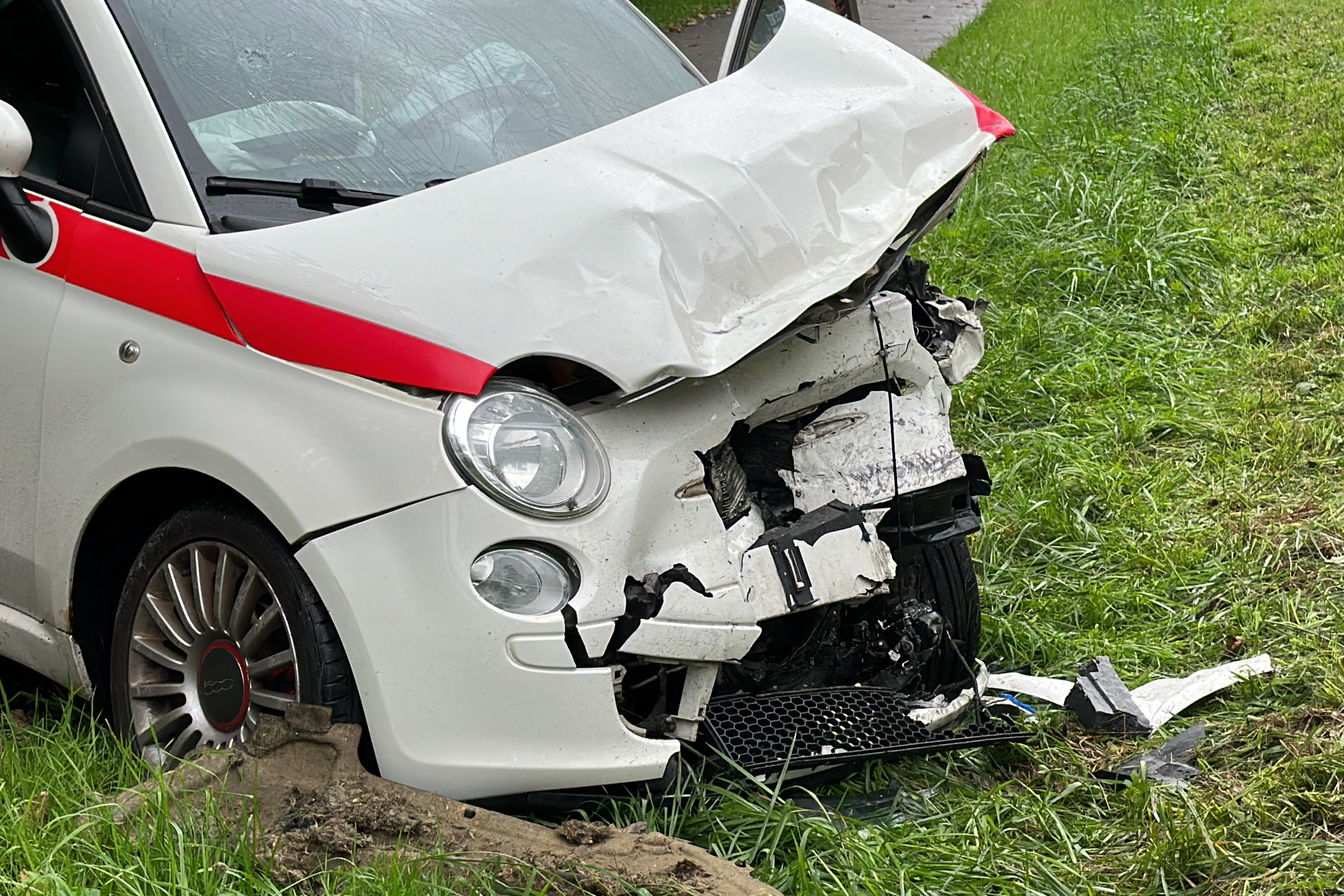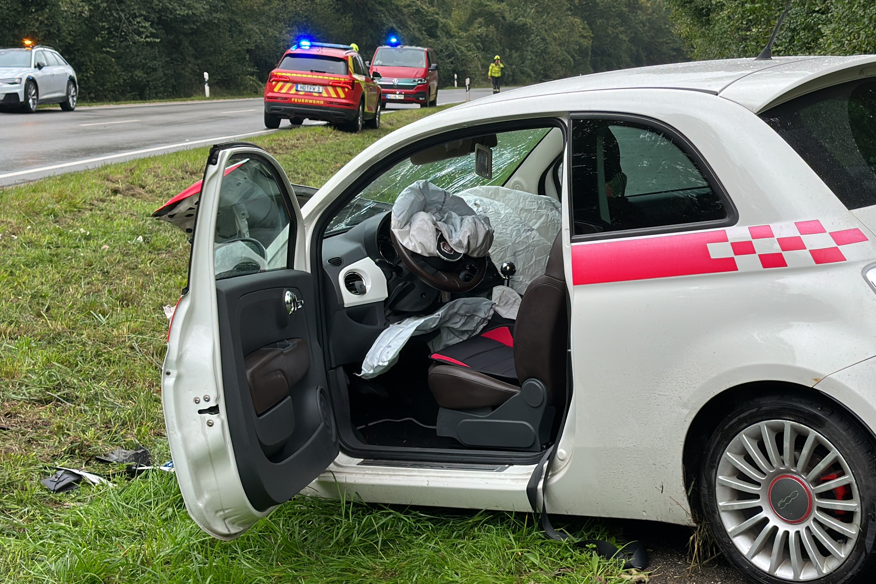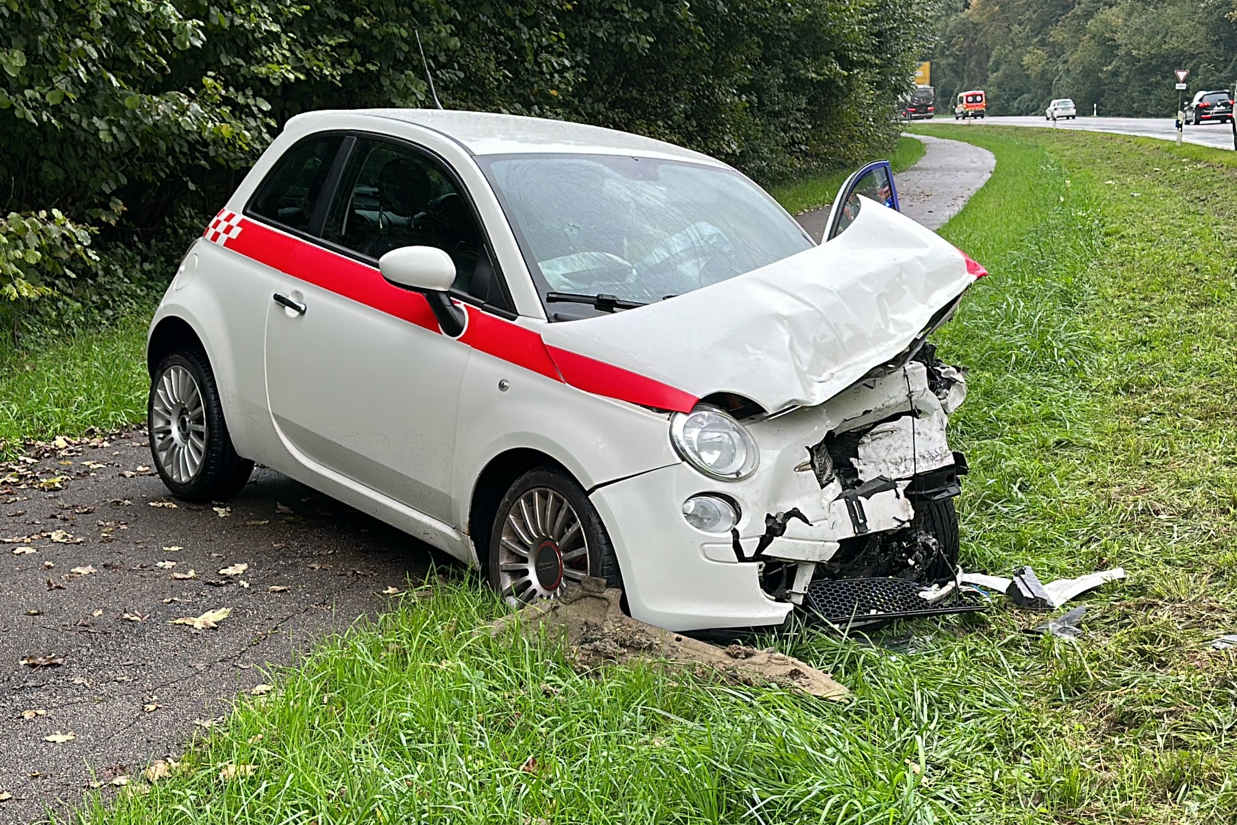 Heftiger Unfall zwischen der Staustufe Bergheim und dem Kreisverkehr Grünau. Polizei geht von Sekundenschlaf als Ursache aus.