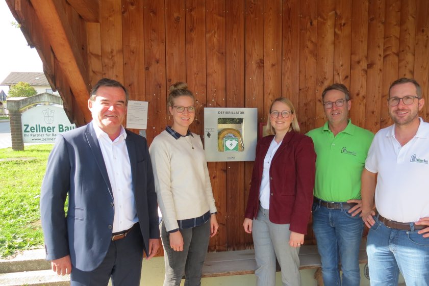 (ty) In Holzhäuseln in der Gemeinde Schweitenkirchen ist kürzlich die offizielle Übergabe eines vom Freistaat finanziell geförderten automatischen Defibrillators erfolgt. Der Pfaffenhofener Landrat Albert Gürtner (FW) und die Geschäftsführerin der hiesigen "Gesundheits-Region plus", Carolin Eder, übergaben das Gerät an die Firma Zellner-Bau (Foto oben). Der Defi befindet sich unmittelbar vor dem Unternehmens-Gebäude in einem Bushäuschen. "Dadurch wird eine 24-stündige Verfügbarkeit sowohl für Mitarbeiterinnen und Mitarbeiter des Unternehmens als auch für Bürgerinnen und Bürger gewährleistet", heißt es aus dem Landratsamt. Für die Einweisung der rund 50 Firmen-Mitarbeiter bezüglich des korrekten Umgangs mit dem Defibrillator sei das Rote Kreuz gewonnen worden.