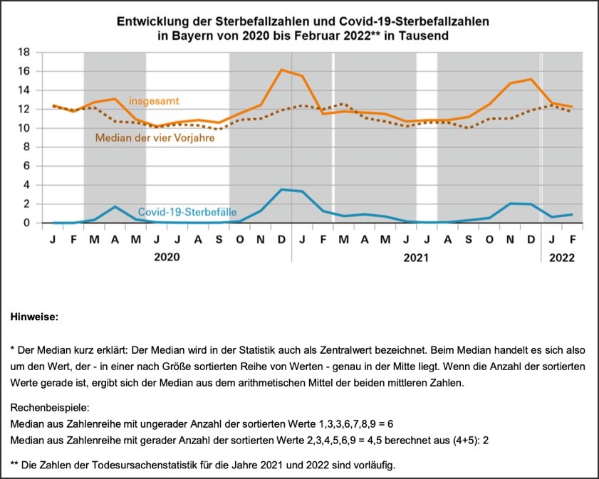 (ty) Das bayerische Landesamt für Statistik hat heute Ergebnisse über die Entwicklung der Sterbefall-Zahlen im Freistaat seit Beginn der Corona-Pandemie veröffentlicht. Demnach gab es im Vergleich zum Jahr 2019 – dem letzten Jahr vor der Pandemie – im Jahr 2020 etwa sieben Prozent mehr und im Jahr 2021 gut zehn Prozent mehr Sterbefälle in Bayern. Die Experten erläutern, dass die höheren Sterbefall-Zahlen in diesen zwei Pandemie-Jahren zu zirka einem Drittel auf das Wachstum und die Alterung der Bevölkerung und zu zwei Dritteln auf Änderungen in der Sterblichkeit der Menschen zurückzuführen seien. Die Entwicklung der Sterbefall-Zahlen und das verstärkte Auftreten von Corona-Toten verlief dabei auffallend parallel, sowohl hinsichtlich ihrer Anzahl als auch im zeitlichen Verlauf. Darüber hinaus wurde gezeigt, welche Personen-Gruppen im Freistaat besonders häufig an Covid19 starben und welche Begleit- und Vorerkrankungen Personen hatten, die an Corona starben.