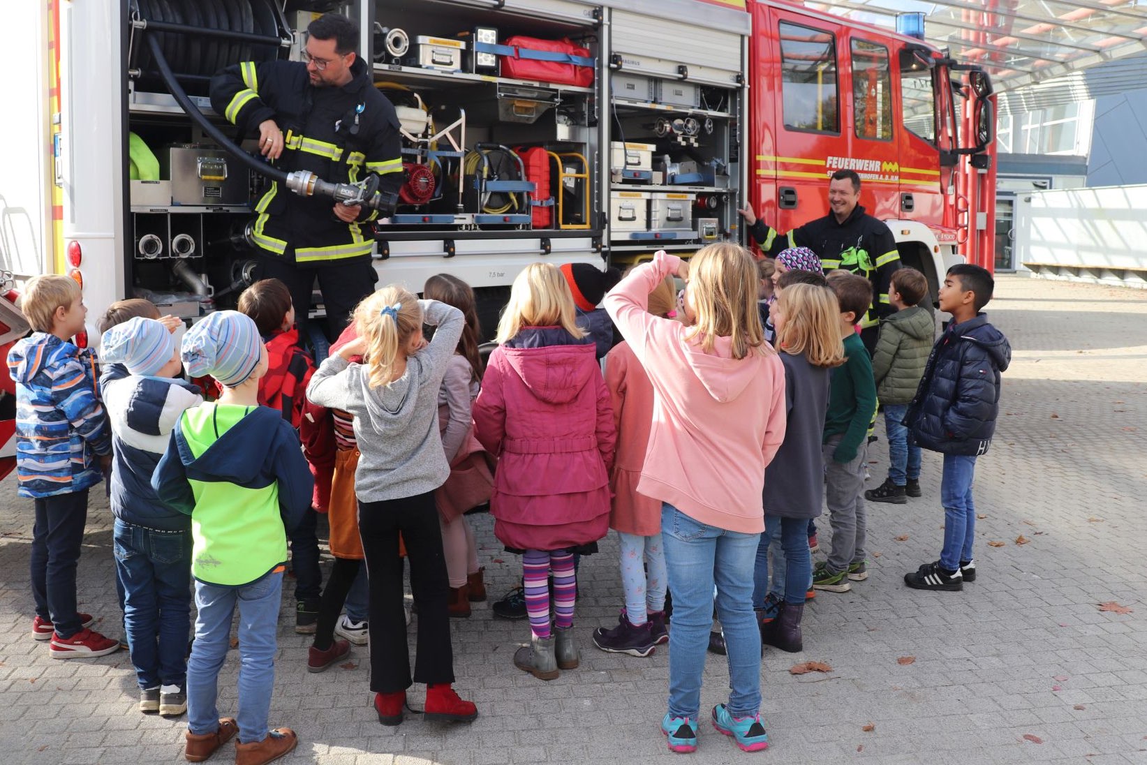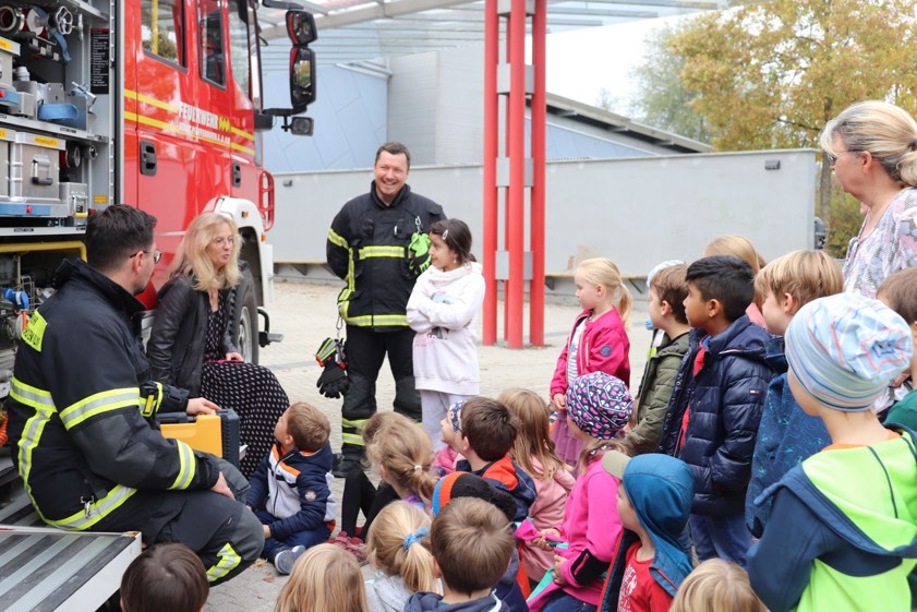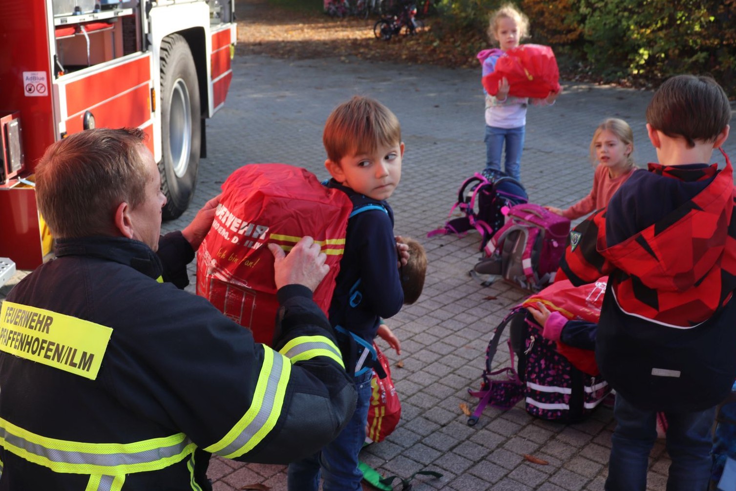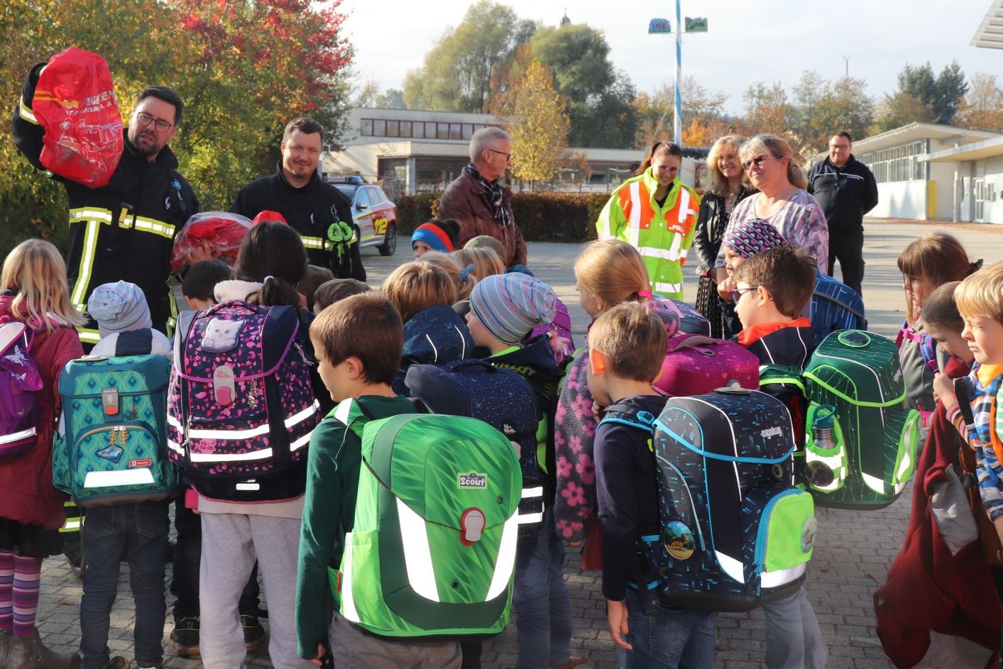 Zur Übergabe dieser Geschenke an die Erstklässler waren die Floriansjünger unter anderem mit dem Löschfahrzeug ausgerückt, welches auf den Rucksack-Covern zu sehen ist. "Die Feuerwehr-Autos allein, speziell das Löschfahrzeug, sorgten bei den Erstklässlern schon für strahlende Augen und pure Begeisterung", berichtet Christoph Höchtl als Schöpfer der Rucksack-Cover und Mitglied des genannten Arbeitskreises. "Der Höhepunkt war aber natürlich die Übergabe der Rucksack-Cover."
