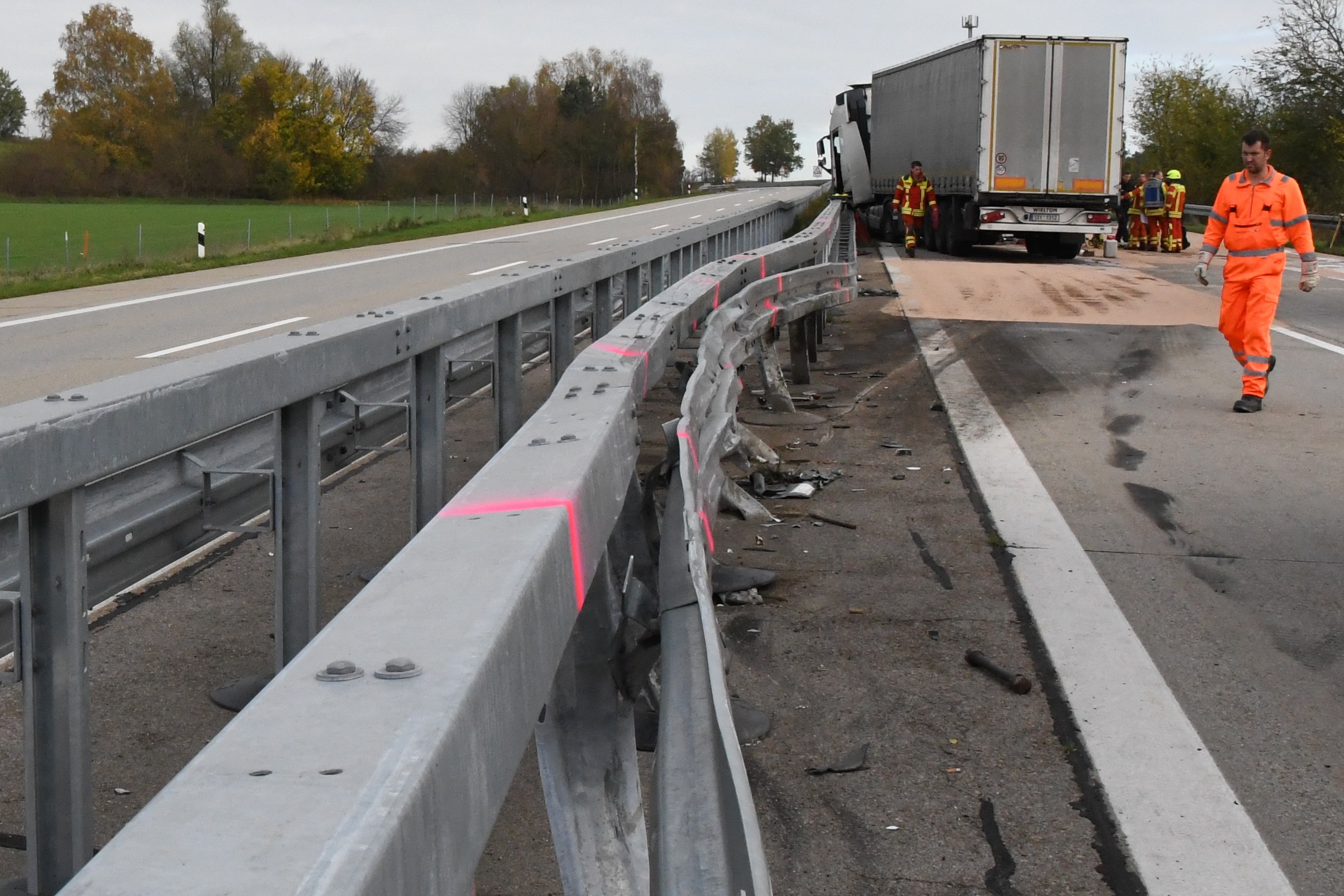 Der bei dem Lastwagen-Unfall entstandene Sachschaden wurde nach ersten Einschätzung der Polizeiinspektion aus Mainburg in einer Größenordnung von mindestens 70 000 Euro angesiedelt. Der Lkw-Fahrer sei glücklicherweise unverletzt geblieben. "Die Richtungsfahrbahn Regensburg ist nach wie vor komplett gesperrt", meldete die Polizei kurz nach 15 Uhr und erklärte außerdem: "Die Bergung und Säuberung der Unfallstelle wird noch zirka zwei Stunden andauern." Alarmiert worden waren die Feuerwehren aus Mainburg, Elsendorf, Aiglsbach und Abensberg.