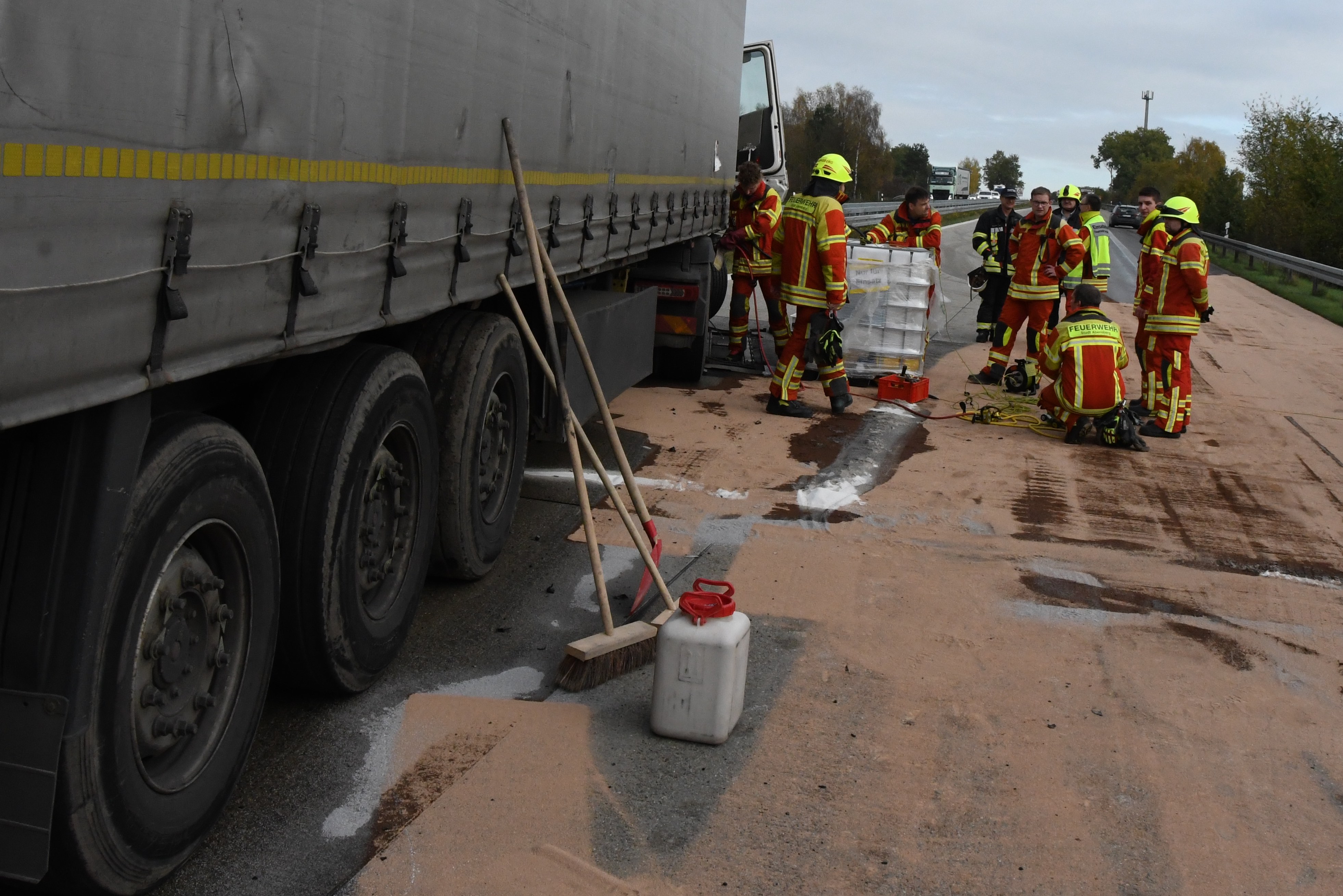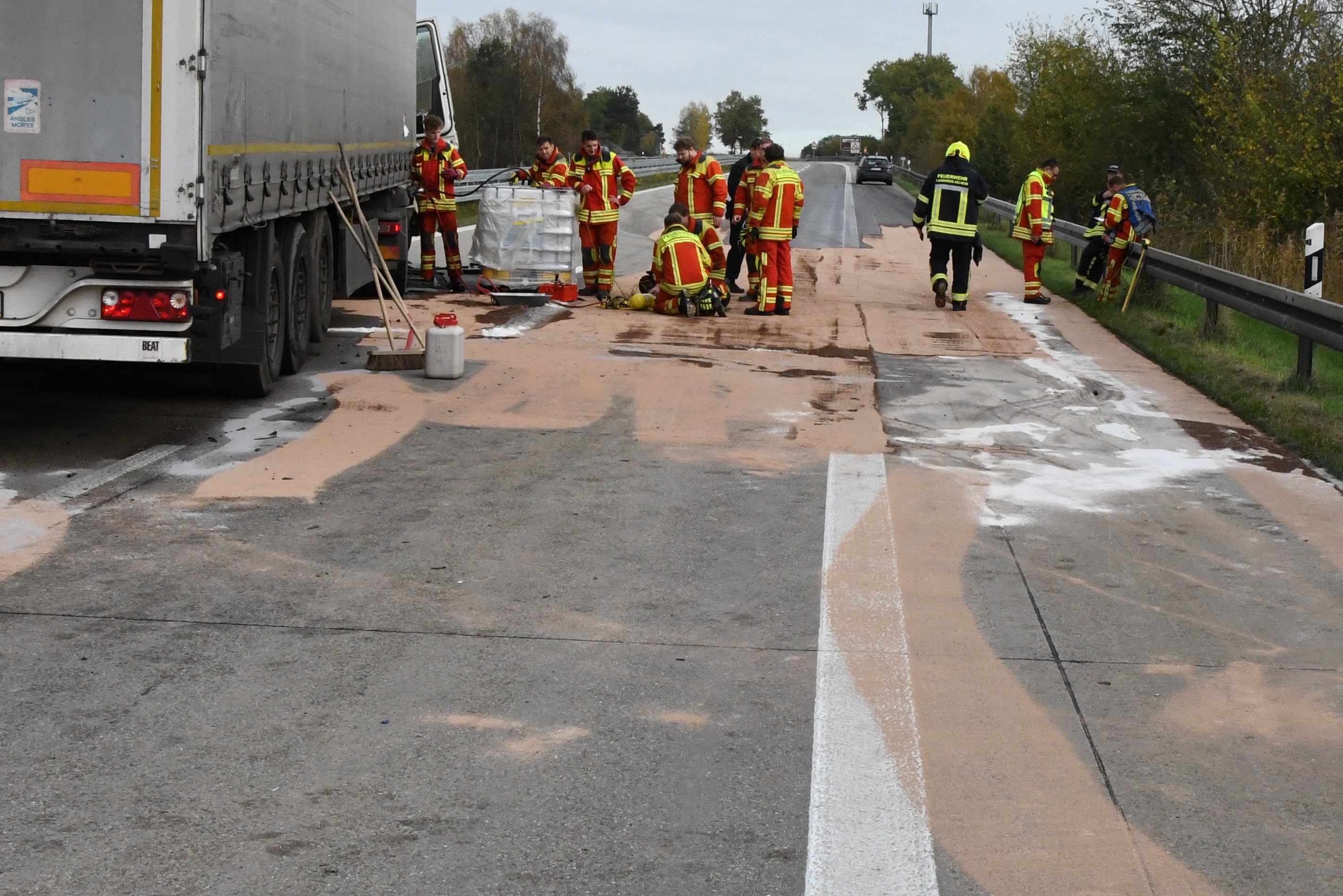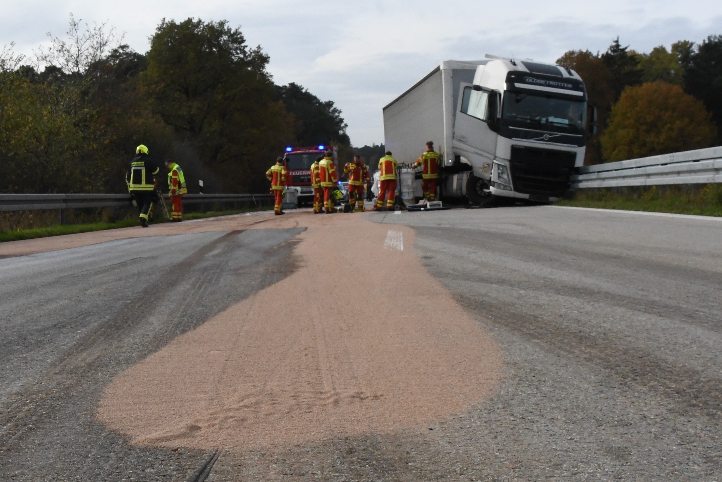 Der schadensträchtige Unfall geschah gegen 10.45 Uhr. Laut Mitteilung der Polizei war ein 67 Jahre alter Lkw-Fahrer aus Tschechien mit seinem Sattelzug auf der A93 in Richtung Regensburg unterwegs, als kurz vor der Autobahn-Anschlussstelle Hausen ein Reifen platzte. Das Lastwagen-Gespann sei daraufhin nach links von der Strecke abgekommen und mit der Leitplanke kollidiert. Nach Angaben der Polizei liefen dadurch ungefähr 500 Liter Diesel-Kraftstoff aus dem Tank der Sattelzug-Maschine aus und verteilten sich auf der Fahrbahn in Richtung Regensburg.