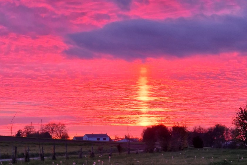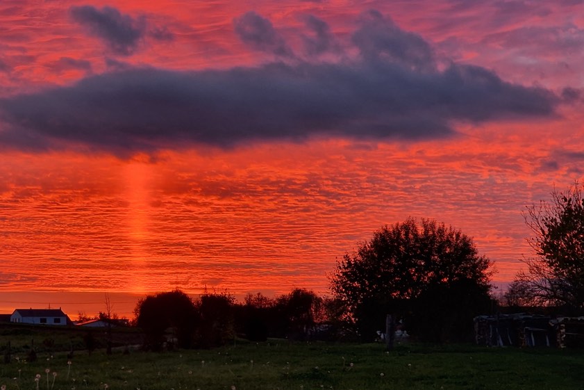 (ty) Und schon geht sie weiter, die Serie von beeindruckenden Fotos aus der Region, die uns unsere Leserinnen und Leser nach wie vor übermitteln. Das Motiv, das wir Ihnen diesmal zeigen können, hat uns Manuela Mielke soeben zukommen lassen. Sie wohnt im Gemeinde-Bereich von Vohburg, doch die beiden Aufnahmen (siehe auch unten) entstanden ihren Worten zufolge am heutigen Nachmittag wenige Minuten vor 17 Uhr im Bereich von Kösching. "Der Himmel war so faszinierend, dass ich anhielt und diese Fotos machte", berichtet sie. Bei dem oben gezeigten Bild muss man schon zwei Mal hinschauen, um zu erkennen, dass sich hier eben nicht ein Sonnenuntergang in einem Gewässer spiegelt...