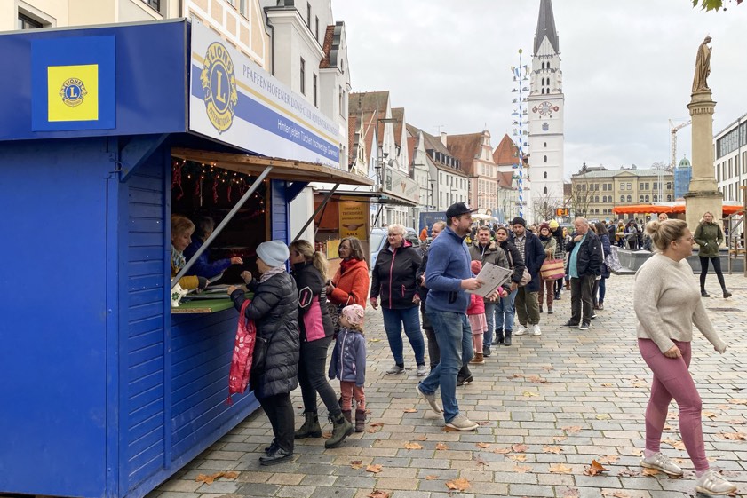 (ty) Die insgesamt 6600 Exemplare des diesjährigen Adventskalenders, den der Pfaffenhofener Lions-Club herausgegeben hat, sind in Windeseile ausverkauft gewesen. Darauf haben die Verantwortlichen heute hingewiesen, nachdem immer wieder Anfragen eingegangen waren. Der Verkauf war, wie angekündigt, am vergangenen Samstag auf dem Hauptplatz in der Kreisstadt gestartet worden. An der Hütte des Lions-Clubs bildete sich eine lange Menschen-Schlange (Foto oben). Und schon gegen 10.30 Uhr seien sämtliche Exemplare zum Preis von jeweils sechs Euro veräußert gewesen, so eine Sprecherin. Der Erlös aus dieser traditionellen Aktion kommt alljährlich wohltätigen Zwecken zugute. Aber auch für die Kalender-Käufer kann sich das kleine Investment groß rentieren.