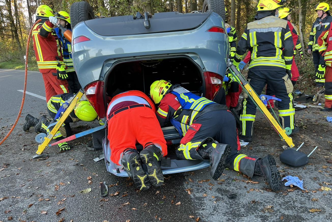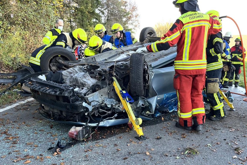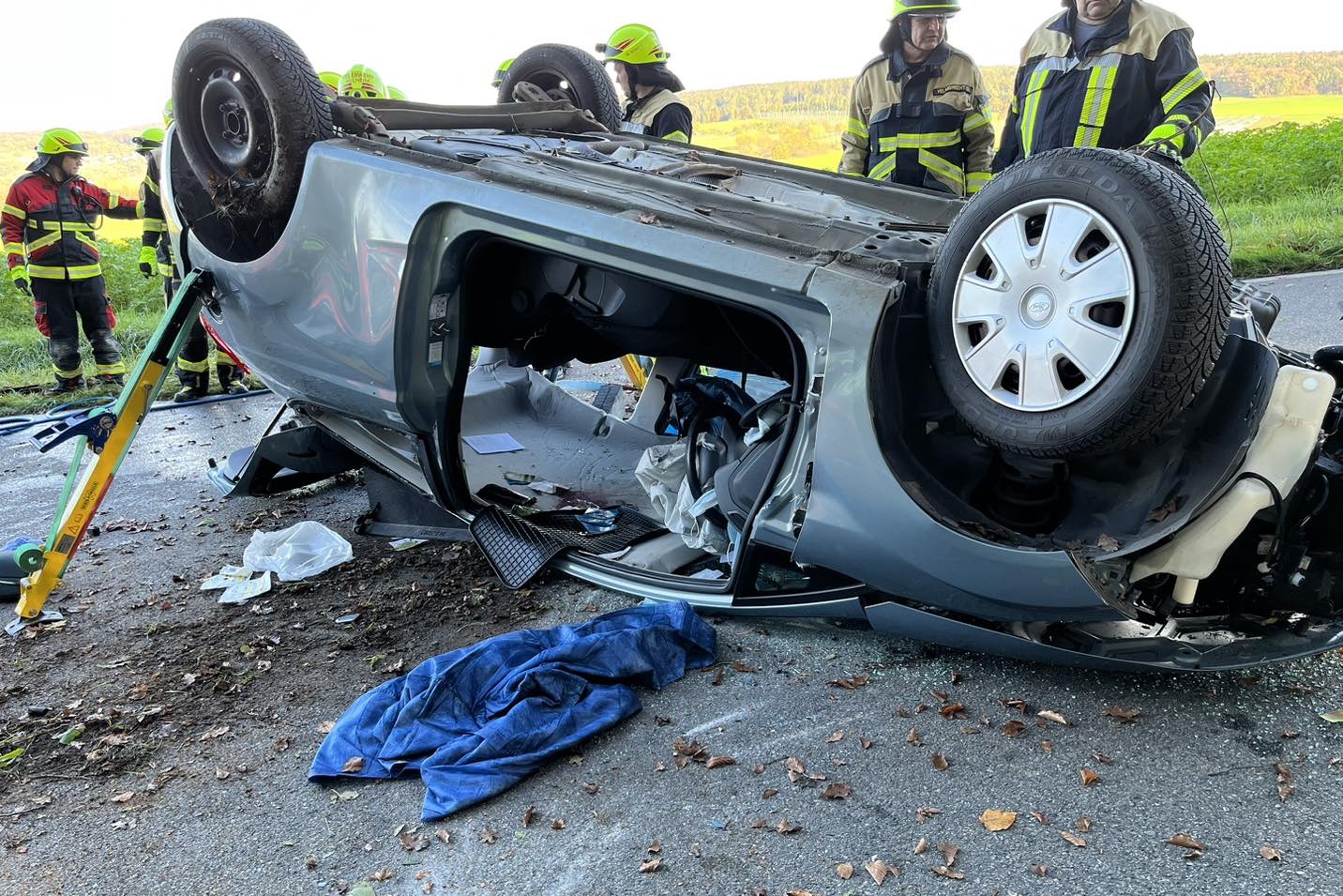 Pkw kam in einer Kurve von der Staatsstraße 2233 ab, touchierte einen Baum, kippte um und blieb auf dem Dach liegen.